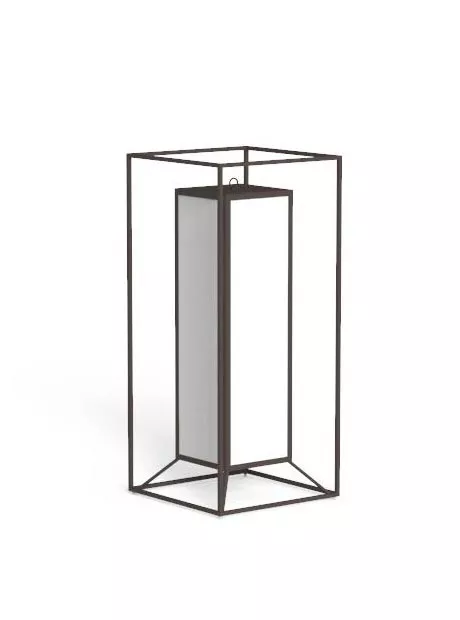 Die 90 cm hohe Laterne CleoAlu passt sich dem Stil der gesamten Kollektion an. Die geometrischen und bestimmten Linien der Struktur aus Aluminium schaffen ein zeitloses Design, das sich in jeden Outdoor-Bereich einfügt.