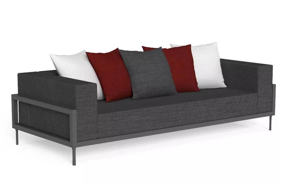 Der 3-Sitzer Cleo Alu für den Außenbereich vereint in sich die charakteristischen Markenzeichen der gesamten Kollektion: Volumen, Form und Gleichgewicht. Die Polster der voluminösen Sitz- und Rückenpolster sind abziehbar, leicht zu reinigen und witterungsbeständig.