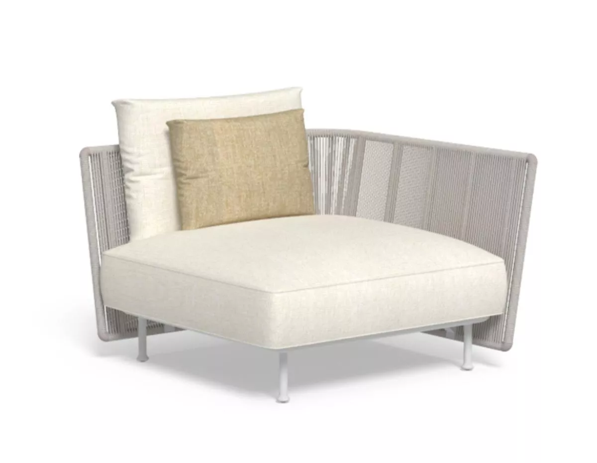 Mit dem Modulsofa Coral lassen sich kreative und elegante Kombinationen schaffen, die jeden Wohnbereich im Freien aufwerten. Die in der gesamten Kollektion anzutreffende reine und ausgeglichene Geometrie kommt bei diesem leichten, minimalistischen Alugestell zum Ausdruck; es passt bestens zu Rücken- und Armlehnen aus synthetischem Kordelgeflecht und verleiht den Modulen ein raffiniertes und zugleich elegantes Design. Die abziehbaren, wetterfesten Polster bereichern das Modell dank der einladenden, großzügigen Formen und der Haptik der sorgfältig ausgewählten Textilgewebe. Die in zahlreichen Farbtönen verfügbaren Dekokissen verleihen dem Produkt eine persönliche Note und verwandeln jeden Platz im Freien in ein einzigartiges und charaktervolles Outdoor-Ambiente.