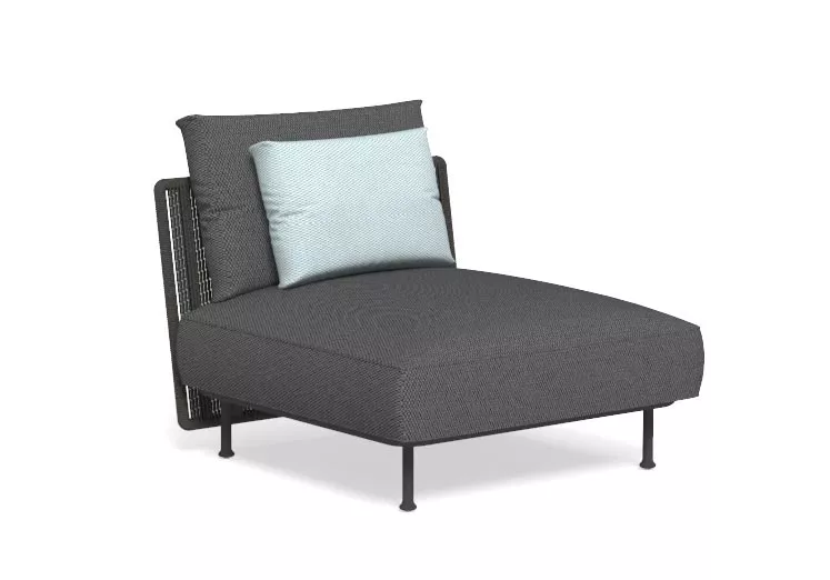 Talenti CORAL - Recamiere Loungemodul • exkl. Dekokissen • inklusive Sitz- und Rückenkissen Die Talenti CORAL Kollektion zeichnet sich durch die kreative Verbindung von Aluminiumgestell, Seilgeflecht und bequemen Kissen aus. Das auf dem Rohrgestell bespannte Seilgeflecht schafft ein Muster, das faszinierende Lichtspiele erzeugt, wenn sich die Sonnenstrahlen auf den Spalten niederlegen. Leichte und sinnliche Gartenmöbel für perfekte Entspannung im Freien in einem perfekten, modernen Look. Mit dem Modulsofa Coral lassen sich kreative und elegante Kombinationen schaffen, die jeden Wohnbereich im Freien aufwerten. Die in der gesamten Kollektion anzutreffende reine und ausgeglichene Geometrie kommt bei diesem leichten, minimalistischen Alugestell zum Ausdruck; es passt bestens zu Rücken- und Armlehnen aus synthetischem Kordelgeflecht und verleiht den Modulen ein raffiniertes und zugleich elegantes Design. Die abziehbaren, wetterfesten Polster bereichern das Modell dank der einladenden, großzügigen Formen und der Haptik der sorgfältig ausgewählten Textilgewebe. Die in zahlreichen Farbtönen verfügbaren Dekokissen verleihen dem Produkt eine persönliche Note und verwandeln jeden Platz im Freien in ein einzigartiges und charaktervolles Outdoor-Ambiente. Wir empfehlen, damit ihre Möbelstücke viele Jahrzehnte überstehen, die Möbel trotz ihrer Wetterbeständigkeit mit einer Schutzhülle gegen Regen und Schnee zu schützen. Produkteigenschaften Gestell: Aluminium, pulverbeschichtet Sitzpolster aus "Quick Dry" Schaumstoff Sitzhöhe: 41 cm Maße: B101 × T190 × H66 cm Gewicht: 26 kg Achtung: Dekokissen können separat erworben werden - nicht im Lieferumfang enthalten Wir sind exklusiver Händler von Talenti - Outdoor Living. Falls Sie einen Artikel nicht bei uns im Online-Shop finden, zögern Sie nicht uns zu kontaktieren. Wir können Ihnen die gesamte Talenti-Kollektion bestellen.