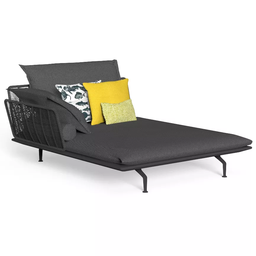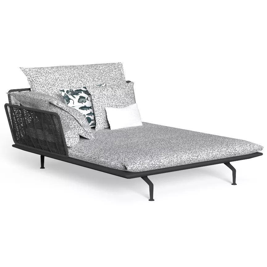 Das Cruise Alu Modul ist aus einem pulverbeschichteten Aluminiumrahmen und die Polster sind aus abziehbarem, schnell trocknendem Schaumstoff gefertigt. Die Rücken- und Armlehnen sind mit einem synthetischen Seil bespannt, das der Kollektion seinen besonderen Ausdruck verleiht.