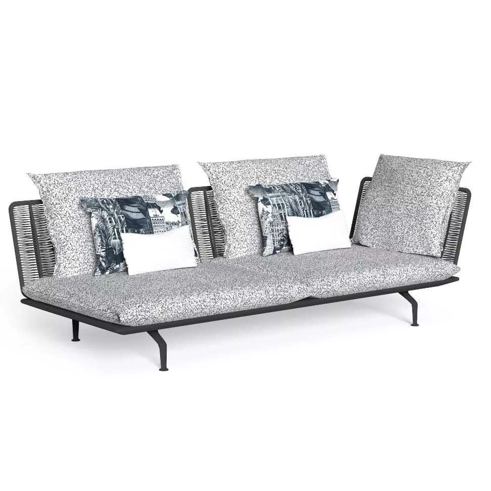 Das Cruise Alu Modul ist aus einem pulverbeschichteten Aluminiumrahmen und die Polster sind aus abziehbarem, schnell trocknendem Schaumstoff gefertigt. Die Rücken- und Armlehnen sind mit einem synthetischen Seil bespannt, das der Kollektion seinen besonderen Ausdruck verleiht.