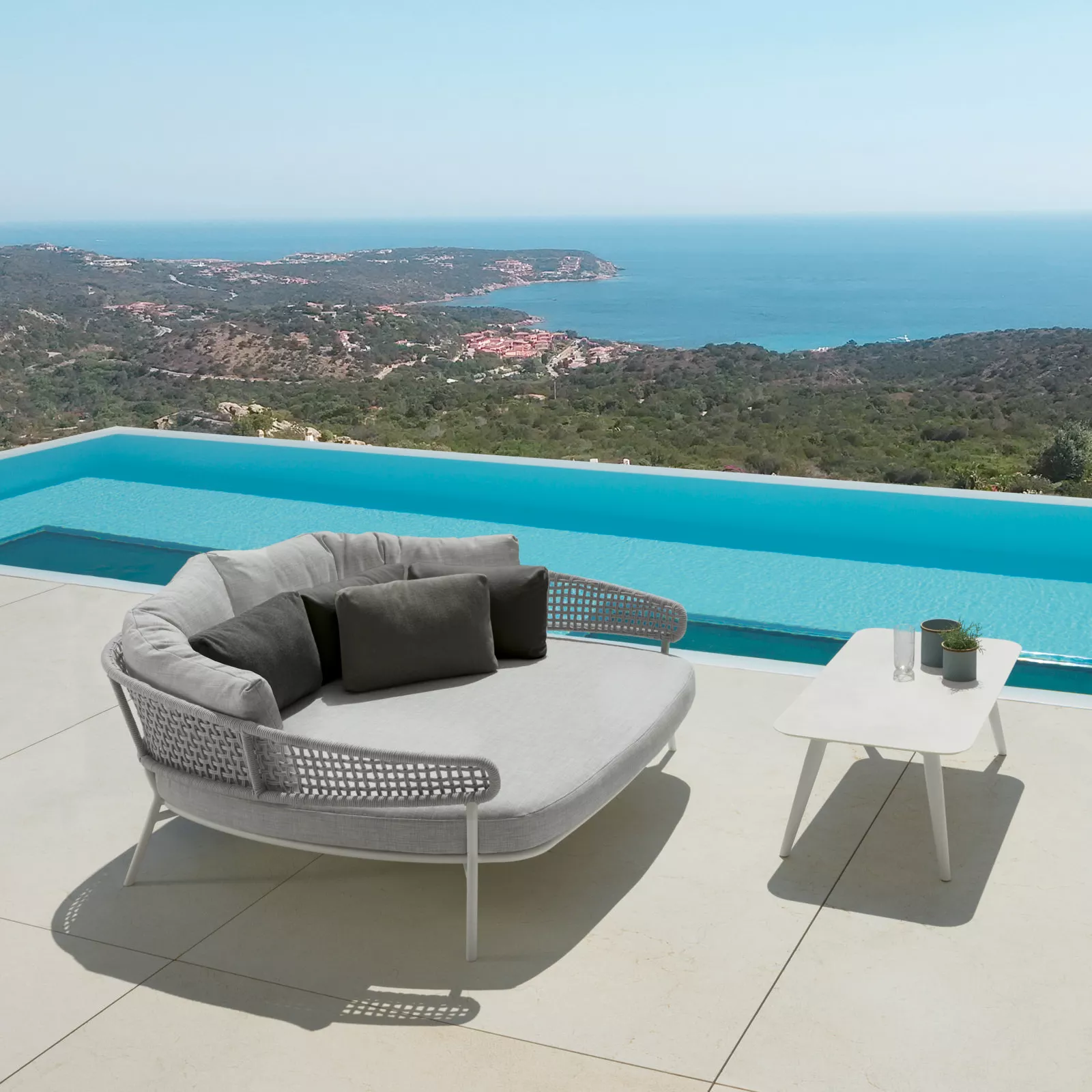 Die elegante Moon-Kollektion aus der Feder von Designer Cristian Visentin kombiniert geschwungene Formen mit Materialien wie Aluminium und Geflecht. Daraus entsteht eine warme und ansprechende Kollektion, die jeden Outdoorbereich in eine Wohlfühloase verwandelt.