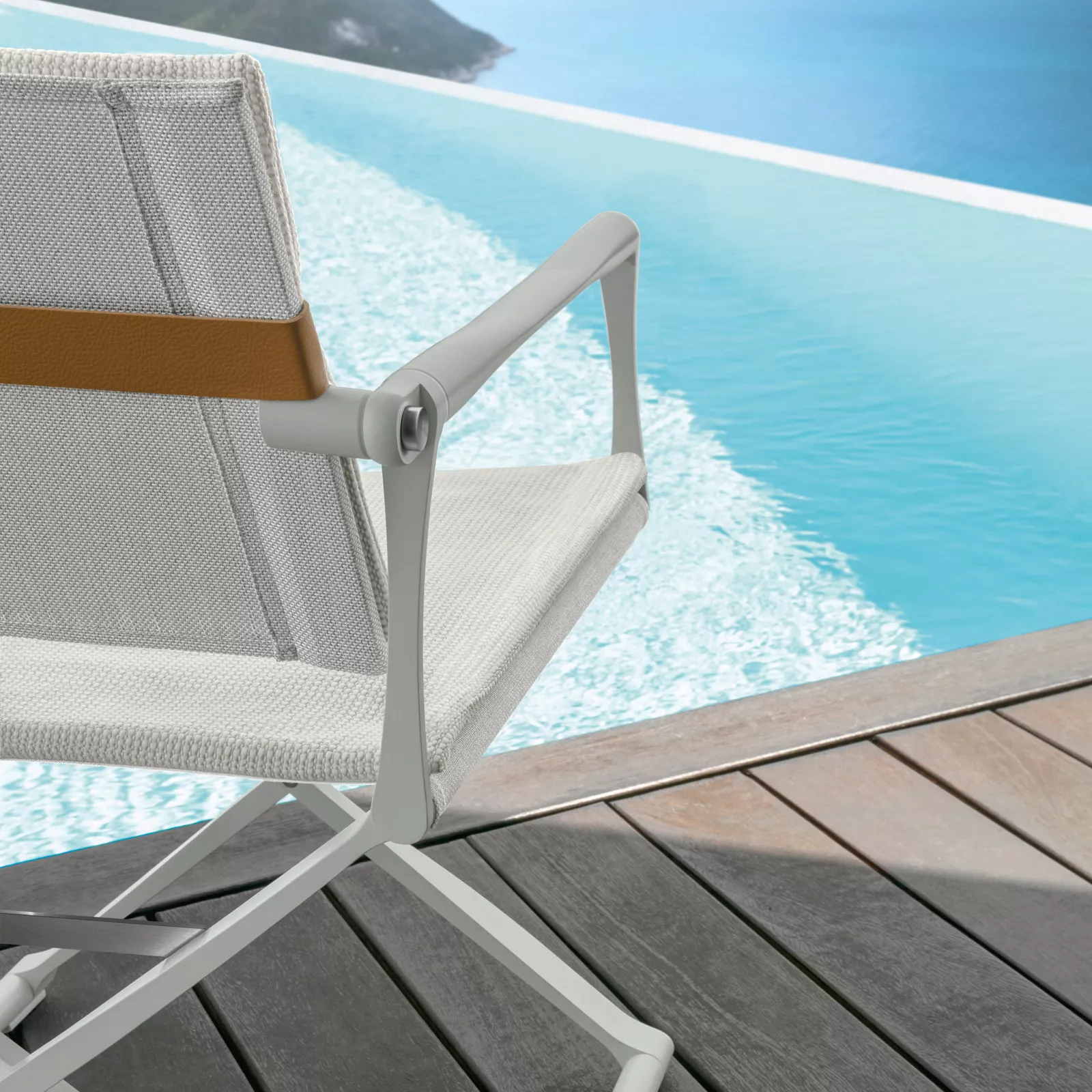 - Gestell/Bezug: White A12 / Beige T12; Armlehne aus Keramik: Calacatta S17; optionale Polster: Beige C132