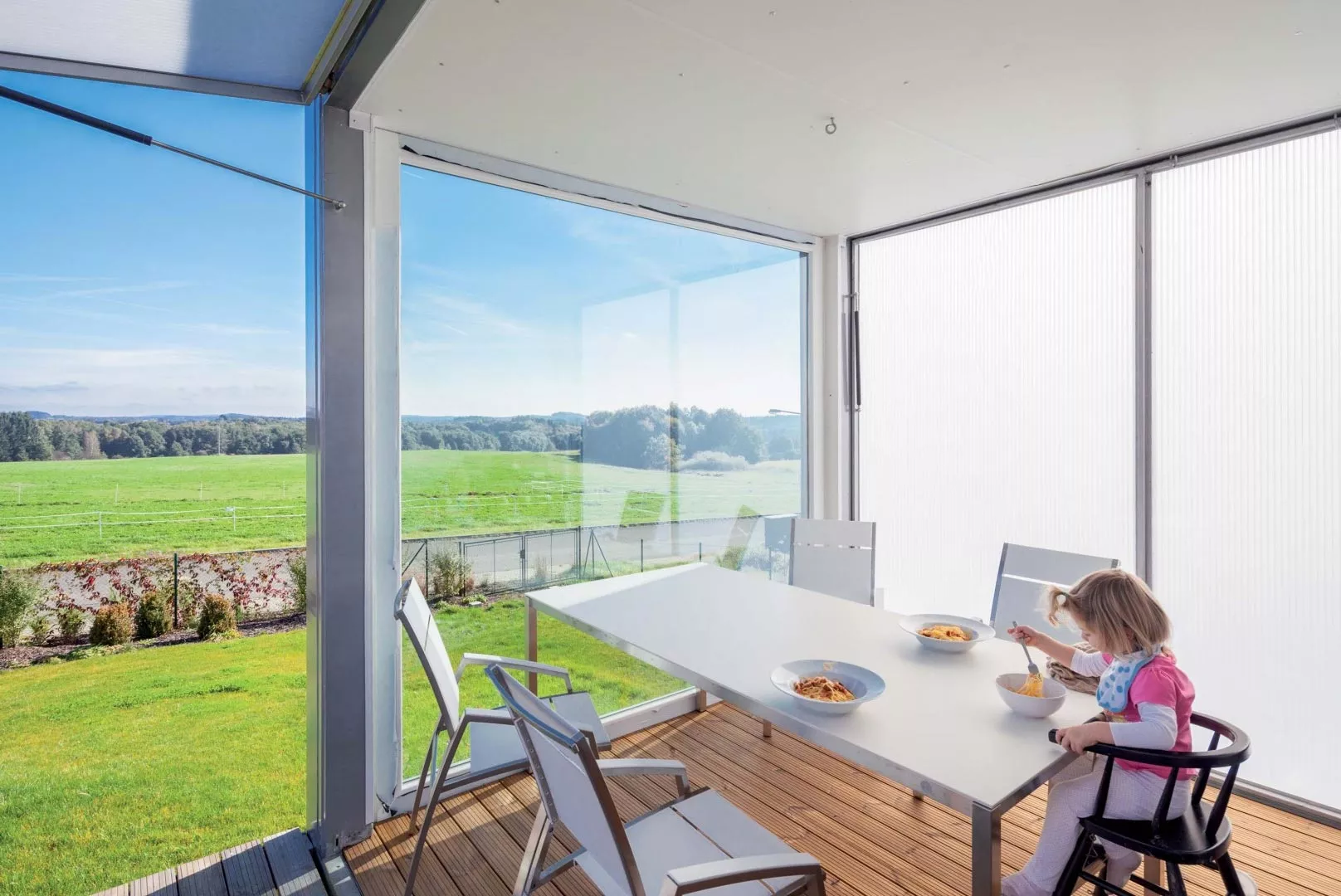 Die Glasplatten für die Tische Puro sind aus Sicherheitsglas gefertigt.