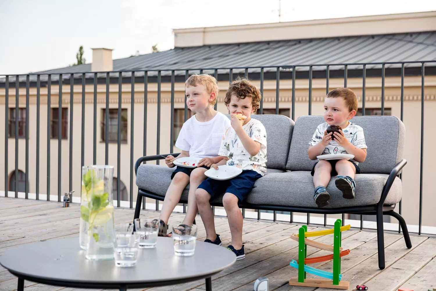Crevin ist ein einzigartiger Bezugsstoff für den Außeneinsatz. Er hat ein natürliches Aussehen und kann leicht in der Waschmaschine gereinigt werden. Sofakissen sind mit Dryfeel® Allwetterschaum gefüllt.