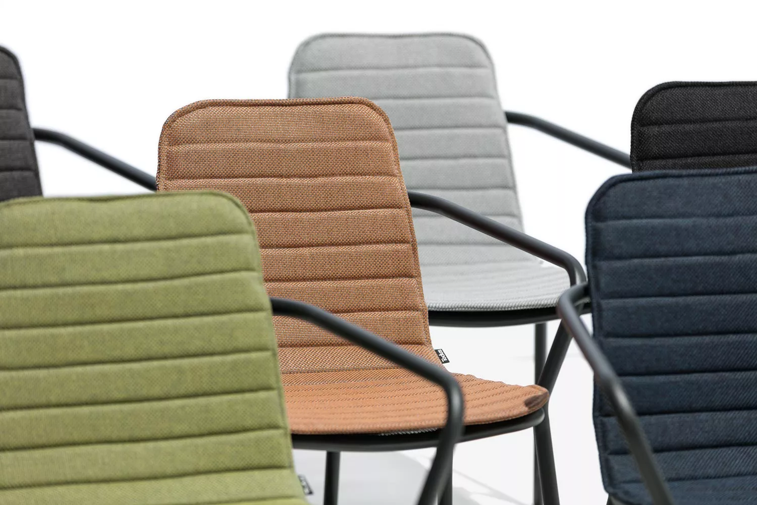 Die Starling-Kollektion basiert auf der Absicht, ein sauberes und sinnvolles Design zu schaffen. Dasselbe gilt für die Arbeit des belgischen Designstudios Segers. Die Form der Stühle, Sessel und Tische spiegelt die Erfahrung zweier Generationen von Designern wider. Die Möbel mit präzisen, modernen Linien entstehen aus gebogenem pulverbeschichtetem Edelstahl. Alle Verschweißungen sowie die glatten Verbindungen des Gitters mit dem Rahmen sind raffiniert verborgen, sodass sie fast nicht wahrnehmbar sind. Der dezente Rahmen aller Sitzmöbel sorgt für Leichtigkeit und Stabilität. Die Stühle und Sessel können mit vertikal gerippten Slip-Over-Polsterungen geliefert werden.