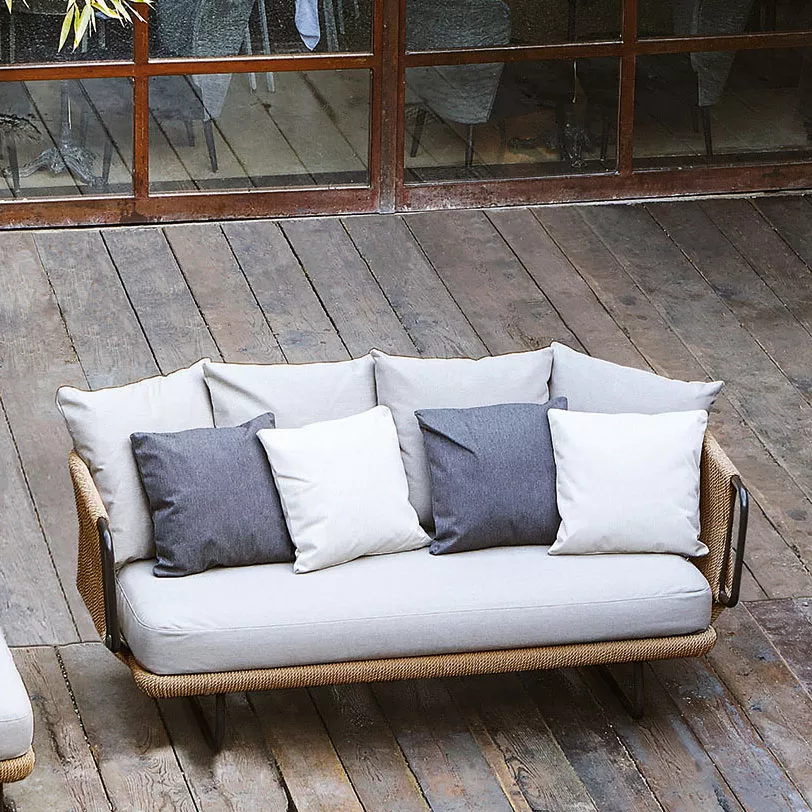 Varaschin Babylon Loungemöbel ist eine moderne Gartenmöbel Kollektion mit einem pulverbeschichteten Aluminiumgestell, die für den Einsatz im Freien konzipiert ist. Die robuste, mit Kunstfaserseil dekorierte Babylon Loungegruppe eignet sich ideal um mit Stil und Charme Ihr Garten oder Ihre Terrasse zu schmücken. Die Kombination des Seilgeflechtes mit den bunten Stoffen der Polsterung strahlt Wärme und Originalität aus. Loungetische sind mit Marmor- bzw. HPL Platten ausgestattet. Wasserabweisende, beständige gegen UV-Strahlung und Verschleiß Stoffe sind mit Aluminiumgestell meisterhaft kombiniert. Babylon - eine Loungegruppe für alle Jahreszeiten.
