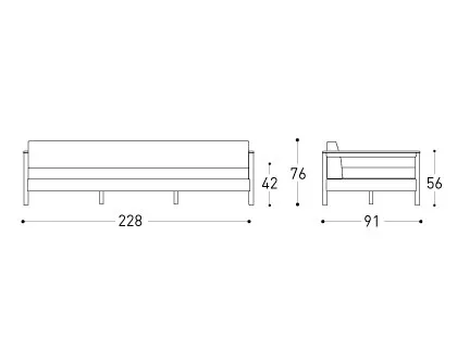 228 × 91 × 42/76 cm