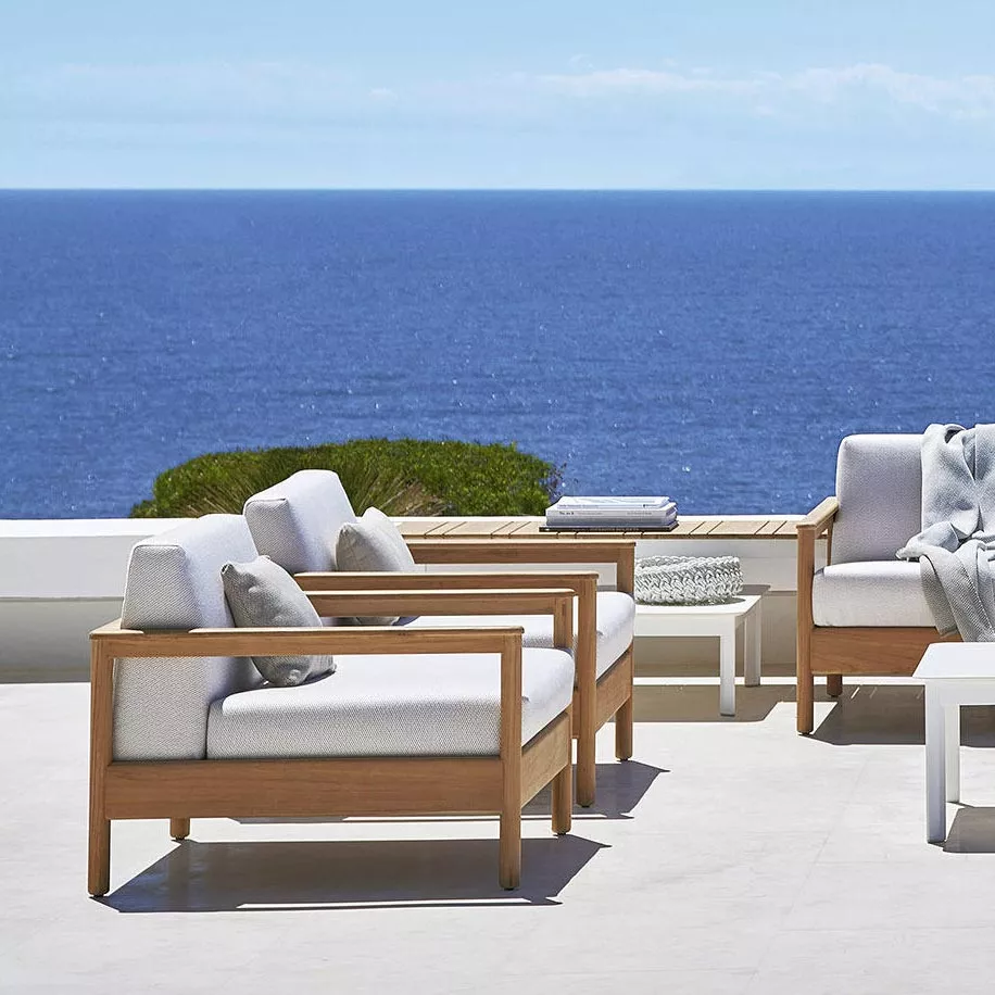 Gartensofa mit Teakholzgestell. Bali Gartenmöbel Kollektion ist mit sichtbarem FSC Teakmassivholzrahmen (Teak aus zertifizierten Pflanzungen) und gepolsterten Elementen lieferbar. Das Sofa der BALI-Kollektion zeichnet sich durch eine leichte Holzstruktur mit klaren Linien aus, die mit weichen Kissen kombiniert ist und zur Ruhe einlädt sowie den essentiellen Komfort bietet, der fast Zen-artig ist. Das Bali Loungesofa und Loungesessel sind mit einem großen und bequemen Sitz ausgestattet. Die breite Palette der modernen und trendigen Stoffarben wird Ihre Auswahl bei der kreativen Gestaltung eines Außenbereich deutlich erleichtern. Diese Eigenschaften garantieren völlige Entspannung in jeder Umgebung im Freien. Die Varaschin Bali Lounge-Kollektion wird sicher zu einem Hingucker in Ihrem Garten, auf einer Terrasse oder Verande. Seit 1969 prägt Varaschin, ein venezianischer Marktführer aus der Outdoor Gartenmöbel Branche, die Bindung zwischen traditioneller Handwerkskunst und modernen ästhetischen Trends. Neben der Produktion von Outdoor-Kollektionen führt Varaschin Verträge aus, die von den angesehensten Namen in der italienischen und internationalen Design-Szene unterzeichnet werden. Jede Gartenmöbel Produktlinie hat ihre eigene Geschichte und Identität. Viel Liebe zum Detail, Originalität und Ästhetik sind die Kernmerkmale der Varaschin Kollektionen. In einem ausgeglichenen Spiel zwischen Leichtigkeit und Komfort entstehen einzigartige Gartenmöbel, die den Innenraum erweitern und mit der Natur verbinden.