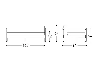 160 × 91 × 42/76 cm