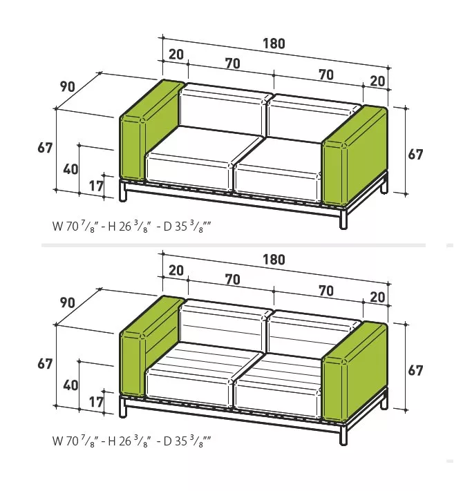 Varaschin Barcode Zweisitzer Loveseat Loungesofa 180 cm mit Teakholzgestell Gartensofa Loungemodul 90 × 90 mit Teakholzgestell 180 cm. Barcode Gartenmöbel Kollektion ist mit sichtbarem FSC Teakmassivholzrahmen (Teak aus zertifizierten Pflanzungen) und gepolsterten Elementen sowie in der gesteppten Ausführung lieferbar. Rücken- und Armlehnen Innenstruktur besteht aus Okumé Holz in der Outdoor Ausführung. Seit 1969 prägt Varaschin, ein venezianischer Marktführer aus der Outdoor Gartenmöbel Branche, die Bindung zwischen traditioneller Handwerkskunst und modernen ästhetischen Trends. Neben der Produktion von Outdoor-Kollektionen führt Varaschin Verträge aus, die von den angesehensten Namen in der italienischen und internationalen Design-Szene unterzeichnet werden. Jede Gartenmöbel Produktlinie hat ihre eigene Geschichte und Identität. Viel Liebe zum Detail, Originalität und Ästhetik sind die Kernmerkmale der Varaschin Kollektionen. In einem ausgeglichenen Spiel zwischen Leichtigkeit und Komfort entstehen einzigartige Gartenmöbel, die den Innenraum erweitern und mit der Natur verbinden. Die Kombination des warmen Teakholz mit dem weichen, komfortablen Polster sorgt für ein Möbelstück mit Stil und Klasse. Varaschin verdient ein Platz mitten im Garten, wo die Schönheit von allen Seiten sichtbar wird! KissenVaraschin Möbel werden hergestellt aus den wetterfesten Materialien. Das gilt ebenso auch für die Kissen und Polster. Teak Das von Varaschin ausgewählte Teakholz ist ein hervorragendes Material hochwertiger Qualität, ideal für die Herstellung von Gartenmöbeln, da es auch bei Temperaturschwankungen, Wasser, Feuchtigkeit und Salz sehr gut haltbar ist. Da Teak von Natur aus sehr viel Öl enthält, ist das hochwertige Holz für Anwendungen im Außenbereich von allen Holzarten am besten geeignet. Teakholz ist ein tropisches Hartholz. Frisches Teakholz hat eine honigbraune Farbe. Wird unbehandeltes Teakholz Witterungseinflüssen ausgesetzt, nimmt die honigbraune Farbe allmählich eine silbergraue Patina an, die für gealtertes Teakholz typisch ist. Produkteigenschaften Teakholzgestell die Herstellung dieser hochwertigen Möbel erfolgt in erstklassiger Qualität UV-, witterungs- und farbbeständig wetterfeste Kissen und Polster leicht zu reinigen Maße: (B × T × H) 180 × 90 × 67 cm Outdoor EinsatzDie Kollektion ist beständig gegen Sonnenlicht und Regen. Die Möbel sollten regelmäßig instandgehalten und im Falle von besonders schlechten Witterungsbedingungen (Eis, Hagel, Temperaturschwankungen, anhaltende Feuchtigkeit, extreme Hitze oder Kälte) geschützt werden. Die Lebensdauer und Haltbarkeit unserer Artikel hängt von der sorgfältigen Pflege ab. Bei Aluminium- und Stahlprodukten (430 , 304EP , 316), auch wenn durch Oberflächenbehandlung für die Aufstellung im Freien geeignet, ist es grundlegend wichtig, in den Produkten aufgestautes Wasser zu entfernen. Alle Artikel sind mit den erforderlichen technischen Bohrungen für Schutzbehandlungen versehen. Der Eintritt von Wasser und dessen Stauung kann zu Rostbildungen in den Rohren führen. Das Produkt ist für den Gebrauch im Meeresklima und zur Aufstellung an chlorhaltigen Swimmingpools geeignet. Empfehlungen: ordnungsgemäße Instandhaltung und Reinigung sind grundlegend wichtig, um die Integrität der Komponenten so lange wie möglich zu erhalten. Um die Produkte immer in gutem Zustand zu erhalten, sollten sie wöchentlich mit reichlich salzfreiem Wasser gewaschen werden, um das Salz, das die Produkte angreift, so gut wie möglich zu beseitigen. Nur auf diese Weise kann das Produkt mit Sicherheit in gutem Zustand gehalten werden.