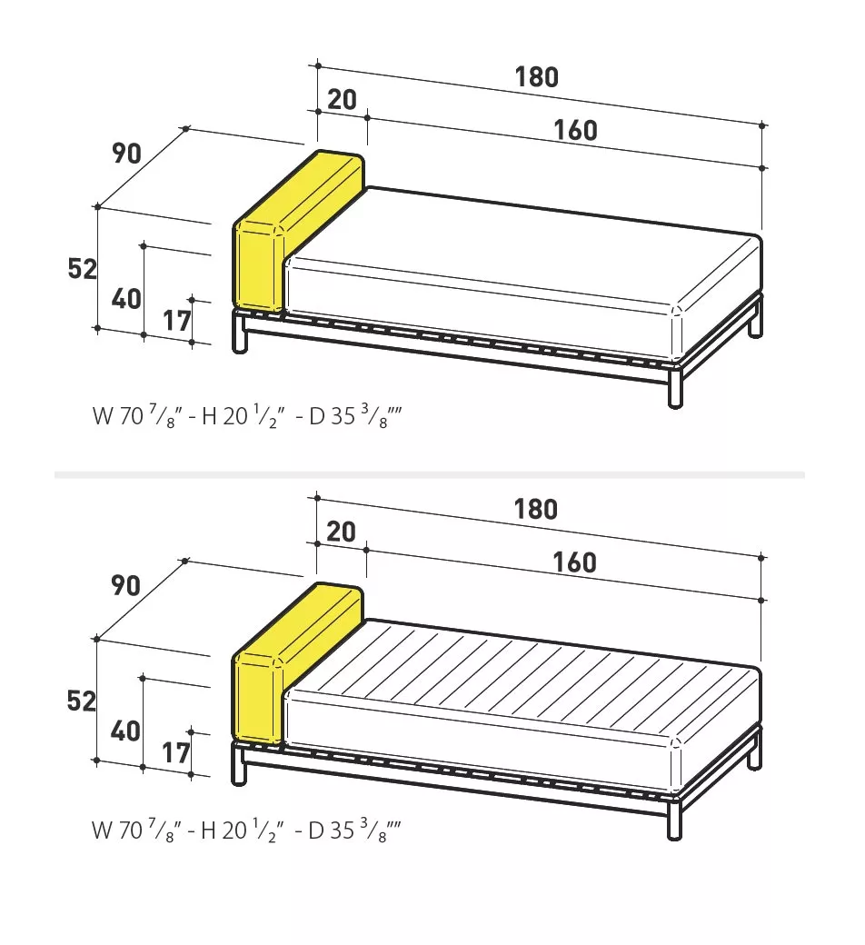 Gartenliege Loungemodul 90 × 180 mit Teakholzgestell. Barcode Gartenmöbel Kollektion ist mit sichtbarem FSC Teakmassivholzrahmen (Teak aus zertifizierten Pflanzungen) und gepolsterten Elementen sowie in der gesteppten Ausführung lieferbar. Rücken- und Armlehnen Innenstruktur besteht aus Okumé Holz in der Outdoor Ausführung. Seit 1969 prägt Varaschin, ein venezianischer Marktführer aus der Outdoor Gartenmöbel Branche, die Bindung zwischen traditioneller Handwerkskunst und modernen ästhetischen Trends. Neben der Produktion von Outdoor-Kollektionen führt Varaschin Verträge aus, die von den angesehensten Namen in der italienischen und internationalen Design-Szene unterzeichnet werden. Jede Gartenmöbel Produktlinie hat ihre eigene Geschichte und Identität. Viel Liebe zum Detail, Originalität und Ästhetik sind die Kernmerkmale der Varaschin Kollektionen. In einem ausgeglichenen Spiel zwischen Leichtigkeit und Komfort entstehen einzigartige Gartenmöbel, die den Innenraum erweitern und mit der Natur verbinden.