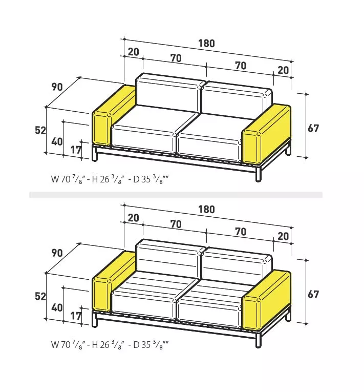 Varaschin Barcode Zweisitzer Loungesofa 180 cm mit Teakholzgestell Gartensofa Loungemodul 90 × 90 mit Teakholzgestell 180 cm. Barcode Gartenmöbel Kollektion ist mit sichtbarem FSC Teakmassivholzrahmen (Teak aus zertifizierten Pflanzungen) und gepolsterten Elementen sowie in der gesteppten Ausführung lieferbar. Rücken- und Armlehnen Innenstruktur besteht aus Okumé Holz in der Outdoor Ausführung. Seit 1969 prägt Varaschin, ein venezianischer Marktführer aus der Outdoor Gartenmöbel Branche, die Bindung zwischen traditioneller Handwerkskunst und modernen ästhetischen Trends. Neben der Produktion von Outdoor-Kollektionen führt Varaschin Verträge aus, die von den angesehensten Namen in der italienischen und internationalen Design-Szene unterzeichnet werden. Jede Gartenmöbel Produktlinie hat ihre eigene Geschichte und Identität. Viel Liebe zum Detail, Originalität und Ästhetik sind die Kernmerkmale der Varaschin Kollektionen. In einem ausgeglichenen Spiel zwischen Leichtigkeit und Komfort entstehen einzigartige Gartenmöbel, die den Innenraum erweitern und mit der Natur verbinden. Die Kombination des warmen Teakholz mit dem weichen, komfortablen Polster sorgt für ein Möbelstück mit Stil und Klasse. Varaschin verdient ein Platz mitten im Garten, wo die Schönheit von allen Seiten sichtbar wird! KissenVaraschin Möbel werden hergestellt aus den wetterfesten Materialien. Das gilt ebenso auch für die Kissen und Polster. Teak Das von Varaschin ausgewählte Teakholz ist ein hervorragendes Material hochwertiger Qualität, ideal für die Herstellung von Gartenmöbeln, da es auch bei Temperaturschwankungen, Wasser, Feuchtigkeit und Salz sehr gut haltbar ist. Da Teak von Natur aus sehr viel Öl enthält, ist das hochwertige Holz für Anwendungen im Außenbereich von allen Holzarten am besten geeignet. Teakholz ist ein tropisches Hartholz. Frisches Teakholz hat eine honigbraune Farbe. Wird unbehandeltes Teakholz Witterungseinflüssen ausgesetzt, nimmt die honigbraune Farbe allmählich eine silbergraue Patina an, die für gealtertes Teakholz typisch ist. Produkteigenschaften Teakholzgestell die Herstellung dieser hochwertigen Möbel erfolgt in erstklassiger Qualität UV-, witterungs- und farbbeständig wetterfeste Kissen und Polster leicht zu reinigen Maße: (B × T × H) 180 × 90 × 67 cm Outdoor EinsatzDie Kollektion ist beständig gegen Sonnenlicht und Regen. Die Möbel sollten regelmäßig instandgehalten und im Falle von besonders schlechten Witterungsbedingungen (Eis, Hagel, Temperaturschwankungen, anhaltende Feuchtigkeit, extreme Hitze oder Kälte) geschützt werden. Die Lebensdauer und Haltbarkeit unserer Artikel hängt von der sorgfältigen Pflege ab. Bei Aluminium- und Stahlprodukten (430 , 304EP , 316), auch wenn durch Oberflächenbehandlung für die Aufstellung im Freien geeignet, ist es grundlegend wichtig, in den Produkten aufgestautes Wasser zu entfernen. Alle Artikel sind mit den erforderlichen technischen Bohrungen für Schutzbehandlungen versehen. Der Eintritt von Wasser und dessen Stauung kann zu Rostbildungen in den Rohren führen. Das Produkt ist für den Gebrauch im Meeresklima und zur Aufstellung an chlorhaltigen Swimmingpools geeignet. Empfehlungen: ordnungsgemäße Instandhaltung und Reinigung sind grundlegend wichtig, um die Integrität der Komponenten so lange wie möglich zu erhalten. Um die Produkte immer in gutem Zustand zu erhalten, sollten sie wöchentlich mit reichlich salzfreiem Wasser gewaschen werden, um das Salz, das die Produkte angreift, so gut wie möglich zu beseitigen. Nur auf diese Weise kann das Produkt mit Sicherheit in gutem Zustand gehalten werden.