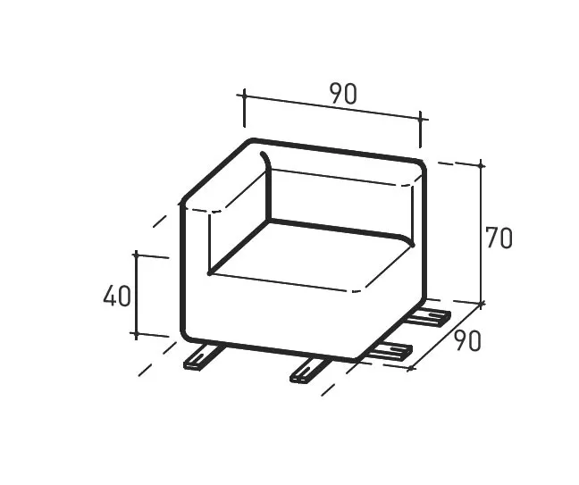 90 × 90 × 70 cm