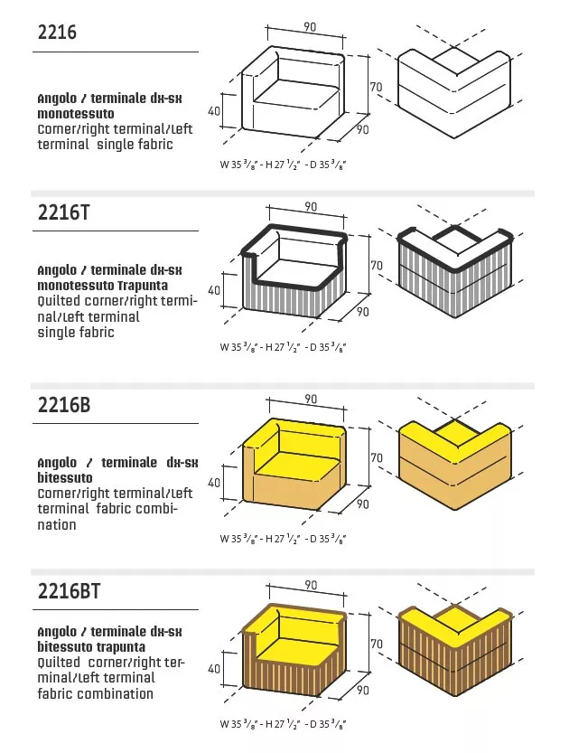 Varaschin Belt Loungesessel (Loungesofa Eckmodul ZWEIFARBIG) 90 cm Abb. ähnlich. Bitte beachten Sie, dass dieser Artikel in einer ZWEIFARBIGEN Ausführung geliefert wird. Wählen Sie bitte die Stofffarbe von Rücken- und Untergestell aus den Klassen: Stofffarbe Sitzfläche B -> Stofffarbe Rücken- und Untergestell B Stofffarbe Sitzfläche C -> Stofffarbe Rücken- und Untergestell B • C Stofffarbe Sitzfläche D -> Stofffarbe Rücken- und Untergestell B • C • D Belt Gartensofa Eckmodul (ZWEIFARBIG) von Varaschin Gartensofa Loungemodul 90 × 90 mit Okuméholzgestell in der Outdoor Ausführung. Belt - ein Sofa für alle Jahreszeiten. Varaschin Belt ist eine modulierbare Lounge Kollektion, die für den Einsatz im Freien konzipiert ist. Wasserabweisende, beständige gegen UV-Strahlung und Verschleiß Stoffe werden auf einem wasserdichten Massivholzrahmen aufgezogen. Belt Gartenmöbel Kollektion ist mit einer einfarbigen oder zweifarbigen Stoffkombination sowie in einer gesteppten Ausführung lieferbar. Seit 1969 prägt Varaschin, ein venezianischer Marktführer aus der Outdoor Gartenmöbel Branche, die Bindung zwischen traditioneller Handwerkskunst und modernen ästhetischen Trends. Neben der Produktion von Outdoor-Kollektionen führt Varaschin Verträge aus, die von den angesehensten Namen in der italienischen und internationalen Design-Szene unterzeichnet werden. Jede Gartenmöbel Produktlinie hat ihre eigene Geschichte und Identität. Viel Liebe zum Detail, Originalität und Ästhetik sind die Kernmerkmale der Varaschin Kollektionen. In einem ausgeglichenen Spiel zwischen Leichtigkeit und Komfort entstehen einzigartige Gartenmöbel, die den Innenraum erweitern und mit der Natur verbinden. Die Kombination des warmen Okuméholz mit dem weichen, komfortablen Polster sorgt für ein Möbelstück mit Stil und Klasse. Varaschin verdient ein Platz mitten im Garten, wo die Schönheit von allen Seiten sichtbar wird! KissenVaraschin Möbelkollektionen werden aus wetterfesten Materialien hergestellt. Das gilt ebenso auch für die Kissen und Polster. Okumé Das von Varaschin ausgewählte Okuméholz ist ein hervorragendes Material hochwertiger Qualität, ideal für die Herstellung von Gartenmöbeln, da es auch bei Temperaturschwankungen, Wasser, Feuchtigkeit und Salz sehr gut haltbar ist. Produkteigenschaften Okuméholzgestell die Herstellung dieser hochwertigen Möbel erfolgt in erstklassiger Qualität UV-, witterungs- und farbbeständig wetterfeste Kissen und Polster leicht zu reinigen Maße: (B × T × H) 90 × 90 × 70 cm Outdoor EinsatzDie Kollektion ist beständig gegen Sonnenlicht und Regen. Die Möbel sollten regelmäßig instandgehalten und im Falle von besonders schlechten Witterungsbedingungen (Eis, Hagel, Temperaturschwankungen, anhaltende Feuchtigkeit, extreme Hitze oder Kälte) geschützt werden. Die Lebensdauer und Haltbarkeit unserer Artikel hängt von der sorgfältigen Pflege ab. Bei Aluminium- und Stahlprodukten (430 , 304EP , 316), auch wenn durch Oberflächenbehandlung für die Aufstellung im Freien geeignet, ist es grundlegend wichtig, in den Produkten aufgestautes Wasser zu entfernen. Alle Artikel sind mit den erforderlichen technischen Bohrungen für Schutzbehandlungen versehen. Der Eintritt von Wasser und dessen Stauung kann zu Rostbildungen in den Rohren führen. Das Produkt ist für den Gebrauch im Meeresklima und zur Aufstellung an chlorhaltigen Swimmingpools geeignet. Empfehlungen: ordnungsgemäße Instandhaltung und Reinigung sind grundlegend wichtig, um die Integrität der Komponenten so lange wie möglich zu erhalten. Um die Produkte immer in gutem Zustand zu erhalten, sollten sie wöchentlich mit reichlich salzfreiem Wasser gewaschen werden, um das Salz, das die Produkte angreift, so gut wie möglich zu beseitigen. Nur auf diese Weise kann das Produkt mit Sicherheit in gutem Zustand gehalten werden.