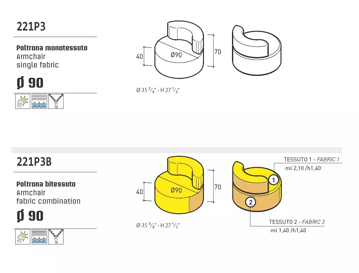 Varaschin Belt Loungesessel (Loungesofa Mittelmodul ZWEIFARBIG) 70 cm Abb. ähnlich. Bitte beachten Sie, dass dieser Artikel in einer ZWEIFARBIGEN Ausführung geliefert wird. Wählen Sie bitte die Stofffarbe von Rücken- und Untergestell aus den Klassen: Stofffarbe Sitzfläche B -> Stofffarbe Rücken- und Untergestell B Stofffarbe Sitzfläche C -> Stofffarbe Rücken- und Untergestell B • C Stofffarbe Sitzfläche D -> Stofffarbe Rücken- und Untergestell B • C • D Belt Loungesessel (Mittelmodul ZWEIFARBIG) von Varaschin Gartensessel / Loungemodul 70 × 90 mit Okuméholzgestell in der Outdoor Ausführung. Belt - ein Sofa für alle Jahreszeiten. Varaschin Belt ist eine modulierbare Lounge Kollektion, die für den Einsatz im Freien konzipiert ist. Wasserabweisende, beständige gegen UV-Strahlung und Verschleiß Stoffe werden auf einem wasserdichten Massivholzrahmen aufgezogen. Belt Gartenmöbel Kollektion ist mit einer einfarbigen oder zweifarbigen Stoffkombination sowie in einer gesteppten Ausführung lieferbar. Seit 1969 prägt Varaschin, ein venezianischer Marktführer aus der Outdoor Gartenmöbel Branche, die Bindung zwischen traditioneller Handwerkskunst und modernen ästhetischen Trends. Neben der Produktion von Outdoor-Kollektionen führt Varaschin Verträge aus, die von den angesehensten Namen in der italienischen und internationalen Design-Szene unterzeichnet werden. Jede Gartenmöbel Produktlinie hat ihre eigene Geschichte und Identität. Viel Liebe zum Detail, Originalität und Ästhetik sind die Kernmerkmale der Varaschin Kollektionen. In einem ausgeglichenen Spiel zwischen Leichtigkeit und Komfort entstehen einzigartige Gartenmöbel, die den Innenraum erweitern und mit der Natur verbinden. Die Kombination des warmen Okuméholz mit dem weichen, komfortablen Polster sorgt für ein Möbelstück mit Stil und Klasse. Varaschin verdient ein Platz mitten im Garten, wo die Schönheit von allen Seiten sichtbar wird! KissenVaraschin Möbelkollektionen werden aus wetterfesten Materialien hergestellt. Das gilt ebenso auch für die Kissen und Polster. Okumé Das von Varaschin ausgewählte Okuméholz ist ein hervorragendes Material hochwertiger Qualität, ideal für die Herstellung von Gartenmöbeln, da es auch bei Temperaturschwankungen, Wasser, Feuchtigkeit und Salz sehr gut haltbar ist. Produkteigenschaften Okuméholzgestell die Herstellung dieser hochwertigen Möbel erfolgt in erstklassiger Qualität UV-, witterungs- und farbbeständig wetterfeste Kissen und Polster leicht zu reinigen Maße: (B × T × H) 70 × 90 × 70 cm Outdoor EinsatzDie Kollektion ist beständig gegen Sonnenlicht und Regen. Die Möbel sollten regelmäßig instandgehalten und im Falle von besonders schlechten Witterungsbedingungen (Eis, Hagel, Temperaturschwankungen, anhaltende Feuchtigkeit, extreme Hitze oder Kälte) geschützt werden. Die Lebensdauer und Haltbarkeit unserer Artikel hängt von der sorgfältigen Pflege ab. Bei Aluminium- und Stahlprodukten (430 , 304EP , 316), auch wenn durch Oberflächenbehandlung für die Aufstellung im Freien geeignet, ist es grundlegend wichtig, in den Produkten aufgestautes Wasser zu entfernen. Alle Artikel sind mit den erforderlichen technischen Bohrungen für Schutzbehandlungen versehen. Der Eintritt von Wasser und dessen Stauung kann zu Rostbildungen in den Rohren führen. Das Produkt ist für den Gebrauch im Meeresklima und zur Aufstellung an chlorhaltigen Swimmingpools geeignet. Empfehlungen: ordnungsgemäße Instandhaltung und Reinigung sind grundlegend wichtig, um die Integrität der Komponenten so lange wie möglich zu erhalten. Um die Produkte immer in gutem Zustand zu erhalten, sollten sie wöchentlich mit reichlich salzfreiem Wasser gewaschen werden, um das Salz, das die Produkte angreift, so gut wie möglich zu beseitigen. Nur auf diese Weise kann das Produkt mit Sicherheit in gutem Zustand gehalten werden.