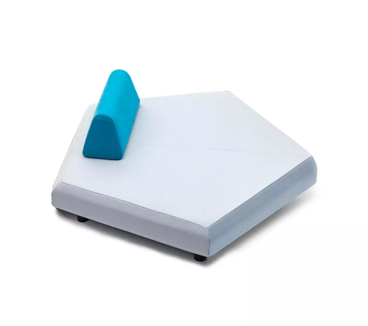 Es handelt sich um ein System von modularen Sofas, bei dem rechteckige, trapezförmige und fünfeckige Sockel frei kombiniert werden können, wodurch eine große Vielfalt an Kompositionen entsteht.