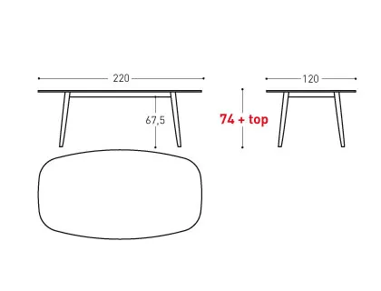 220 × 120 × 74 cm + Tischplattenhöhe