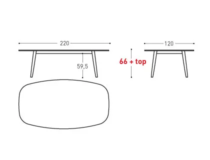 220 × 120 × 66 cm + Tischplattenhöhe