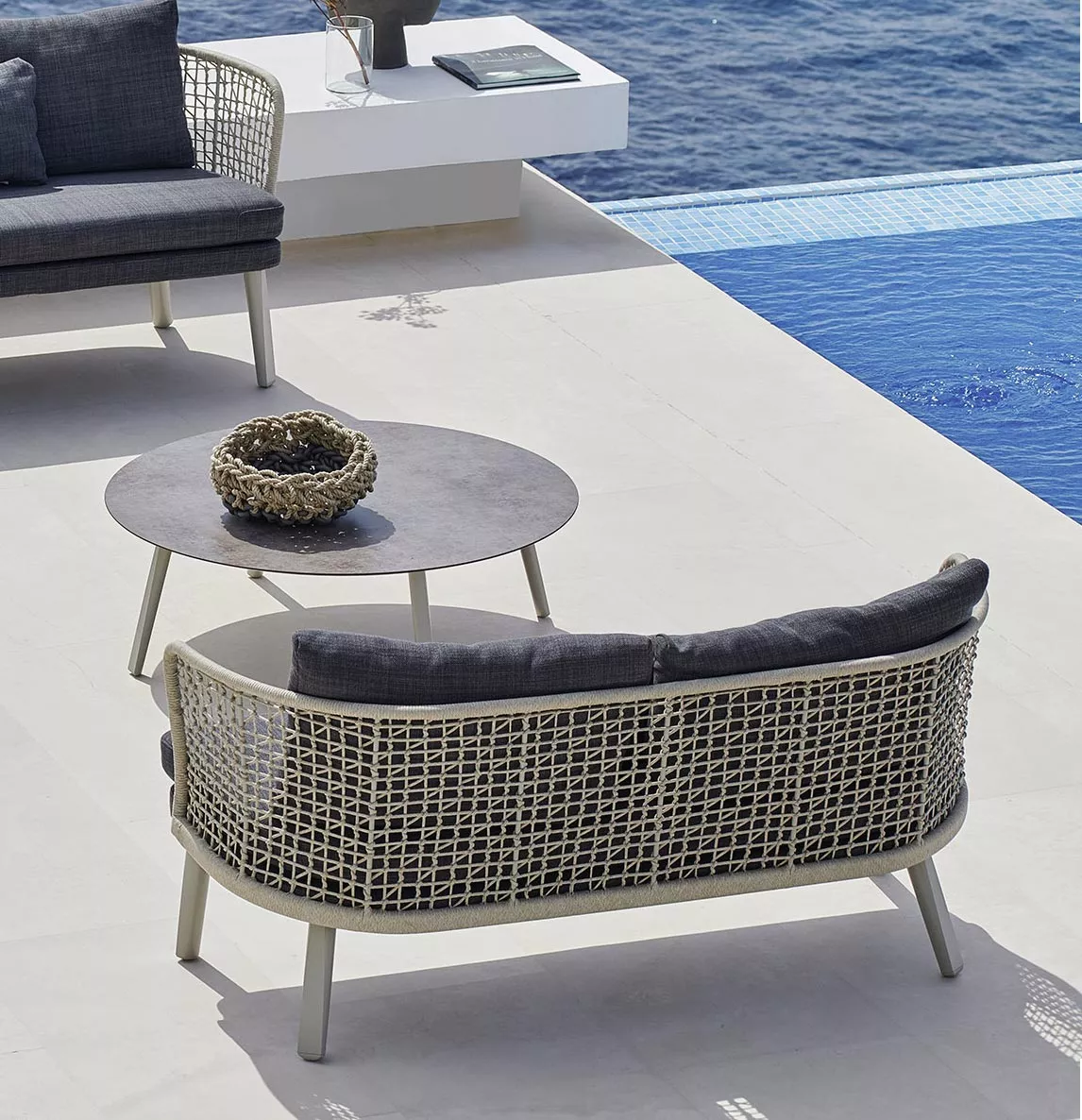 Varaschin Emma Cross Couchtisch Ø 86 cm Die Emma Cross Couchtische ergänzen die Kollektion mit stilvollen, niedrigen Tischen, die perfekt für den Außenbereich geeignet sind. Ihre Konstruktion aus pulverbeschichtetem Aluminium macht sie leicht und gleichzeitig stabil. Die Tischbeine sind mit einer handgeflochtenen Kunstfaser-Kordel umwoben und verleihen den Tischen eine besondere handwerkliche Note. Produkteigenschaften Aluminium-Untergestell die Herstellung dieser hochwertigen Möbel erfolgt in erstklassiger Qualität UV-, witterungs- und farbbeständig Tischplatte in HPL oder Keramikausführung leicht zu reinigen Maße: (B × H)Ø 86 x 34 cm Outdoor EinsatzDie Kollektion ist beständig gegen Sonnenlicht und Regen. Die Möbel sollten regelmäßig instandgehalten und im Falle von besonders schlechten Witterungsbedingungen (Eis, Hagel, Temperaturschwankungen, anhaltende Feuchtigkeit, extreme Hitze oder Kälte) geschützt werden. Die Lebensdauer und Haltbarkeit unserer Artikel hängt von der sorgfältigen Pflege ab. Auch wenn durch Oberflächenbehandlung für die Aufstellung im Freien geeignet, ist es grundlegend wichtig, in den Produkten aufgestautes Wasser zu entfernen. Alle Artikel sind mit den erforderlichen technischen Bohrungen für Schutzbehandlungen versehen. Das Produkt ist für den Gebrauch im Meeresklima und zur Aufstellung an chlorhaltigen Swimmingpools geeignet. Empfehlungen: ordnungsgemäße Instandhaltung und Reinigung sind grundlegend wichtig, um die Integrität der Komponenten so lange wie möglich zu erhalten. Um die Produkte immer in gutem Zustand zu erhalten, sollten sie wöchentlich mit reichlich salzfreiem Wasser gewaschen werden, um das Salz, das die Produkte angreift, so gut wie möglich zu beseitigen. Nur auf diese Weise kann das Produkt mit Sicherheit in gutem Zustand gehalten werden.