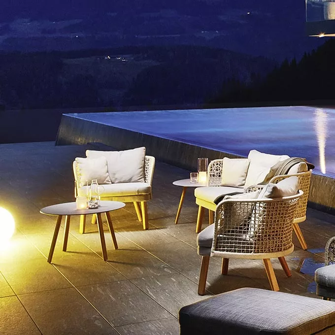 Varaschin Möbelkollektionen werden aus wetterfesten Materialien hergestellt.
