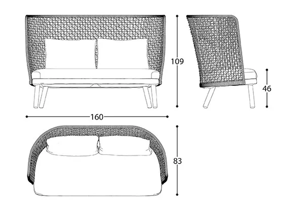Varaschin Emma Cross Sofa Die Kollektion EMMA CROSS verbindet stilvolle Eleganz mit höchstem Sitzkomfort und ist eine Weiterentwicklung der charakteristischen Designsprache von EMMA. Mit ihrem einzigartigen, breit geflochtenen Muster und dem veredelten Acrylband mit zentraler Stickerei setzt diese Kollektion neue Maßstäbe in der Outdoor-Gestaltung. Der Emma Cross 2-Sitzer oder 3-Sitzer ist ein outdoorfähiges Sofa, das durch sein elegantes Design und seine hochwertige Verarbeitung überzeugt. Das pulverbeschichtete Aluminiumgestell wird in aufwendiger Handarbeit mit einem Acrylgewebeband umflochten und ist in fünf stilvollen Ausführungen erhältlich. Produkteigenschaften Aluminium-Untergestell Rückenlehne aus handgeflochtenem, textilem Acrylband in fünf Ausführungen die Herstellung dieser hochwertigen Möbel erfolgt in erstklassiger Qualität UV-, witterungs- und farbbeständig wetterfeste Kissen und Polster (6 Rückenkissen oder 8 Rückenkissen inklusive) leicht zu reinigen Maße: (B × T × SH/H)2-Sitzer: 178 x 100 x 46/93 cm3-Sitzer: 227 x 100 x 46/93 cm Outdoor EinsatzDie Kollektion ist beständig gegen Sonnenlicht und Regen. Die Möbel sollten regelmäßig instandgehalten und im Falle von besonders schlechten Witterungsbedingungen (Eis, Hagel, Temperaturschwankungen, anhaltende Feuchtigkeit, extreme Hitze oder Kälte) geschützt werden. Die Lebensdauer und Haltbarkeit unserer Artikel hängt von der sorgfältigen Pflege ab. Auch wenn durch Oberflächenbehandlung für die Aufstellung im Freien geeignet, ist es grundlegend wichtig, in den Produkten aufgestautes Wasser zu entfernen. Alle Artikel sind mit den erforderlichen technischen Bohrungen für Schutzbehandlungen versehen. Das Produkt ist für den Gebrauch im Meeresklima und zur Aufstellung an chlorhaltigen Swimmingpools geeignet. Empfehlungen: ordnungsgemäße Instandhaltung und Reinigung sind grundlegend wichtig, um die Integrität der Komponenten so lange wie möglich zu erhalten. Um die Produkte immer in gutem Zustand zu erhalten, sollten sie wöchentlich mit reichlich salzfreiem Wasser gewaschen werden, um das Salz, das die Produkte angreift, so gut wie möglich zu beseitigen. Nur auf diese Weise kann das Produkt mit Sicherheit in gutem Zustand gehalten werden.