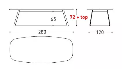 280 × 120 × 72 cm + Tischplattenhöhe