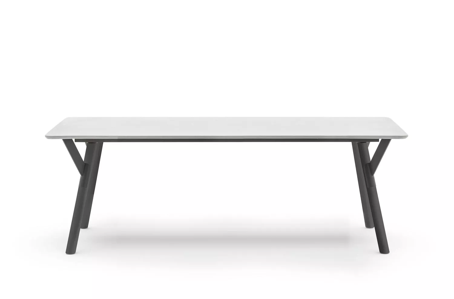 Die Outdoorkollektion Varaschin Link, bestehend aus festen oder ausziehbaren Tischen mit einem rostfreien Stahlgestell, (Rahmen + Bügel + Beine) pulverbeschichtet. Beine sind auch in Teak massiv, FSC zertifiziert lieferbar. Sehr robust und widerstandsfähig sind diese Outdoor Esstische für jeden Gebrauch im Freien geeignet, von der Verwendung im Garten, bis auf der Terrasse eines Restaurants oder eines Strandhauses. HPL-, Teak- oder Zementtischplatten (nur feste Tische 200 × 100 und 240 × 100) werden auf einem Gestell in der Standardhöhe 72 cm oder in der Ausführung Low 66 cm montiert.
