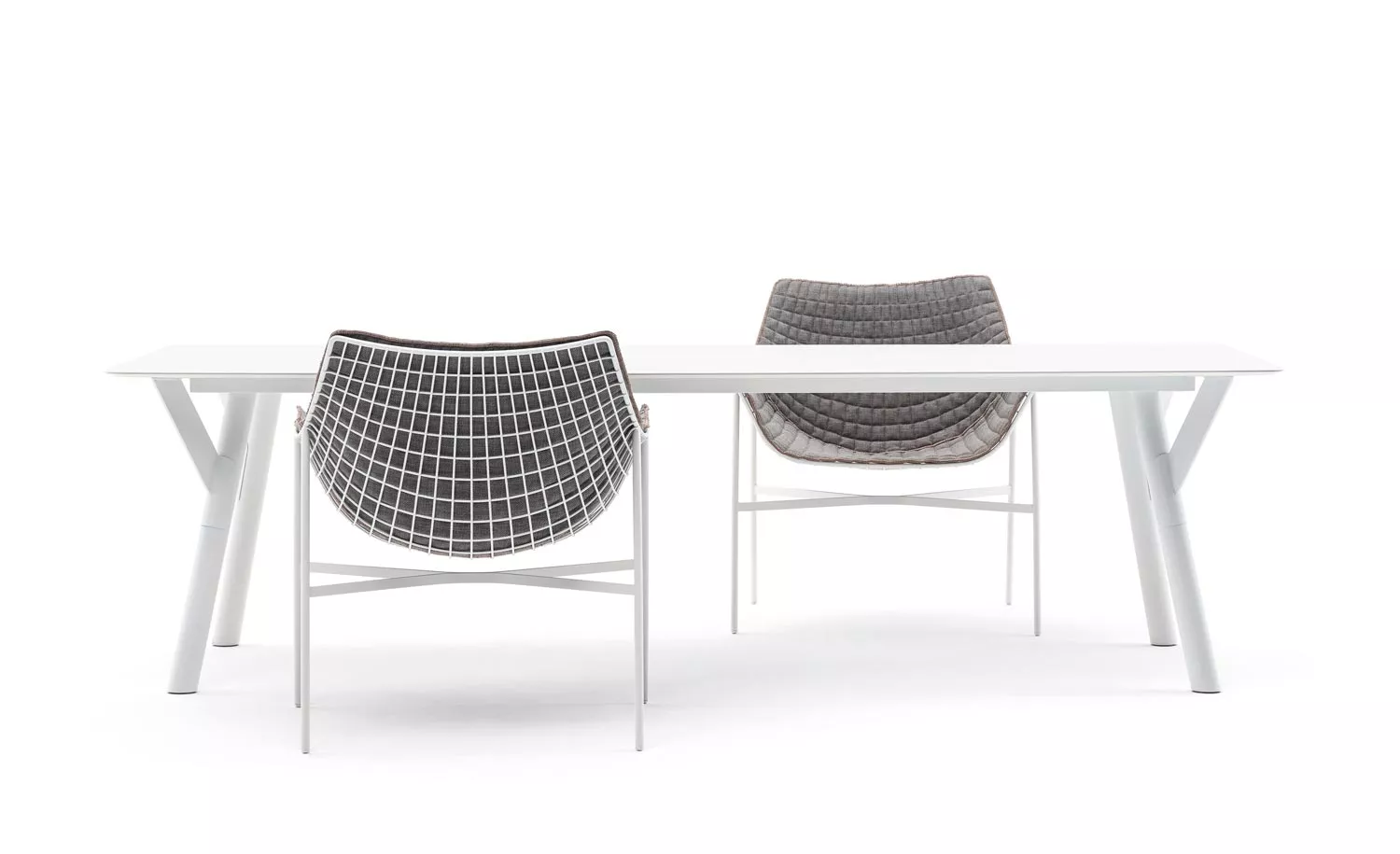 Die Outdoorkollektion Varaschin Link, bestehend aus festen oder ausziehbaren Tischen mit einem rostfreien Stahlgestell, (Rahmen + Bügel + Beine) pulverbeschichtet. Beine sind auch in Teak massiv, FSC zertifiziert lieferbar. Sehr robust und widerstandsfähig sind diese Outdoor Esstische für jeden Gebrauch im Freien geeignet, von der Verwendung im Garten, bis auf der Terrasse eines Restaurants oder eines Strandhauses. HPL-, Teak- oder Zementtischplatten (nur feste Tische 200 × 100 und 240 × 100) werden auf einem Gestell in der Standardhöhe 72 cm oder in der Ausführung Low 66 cm montiert.