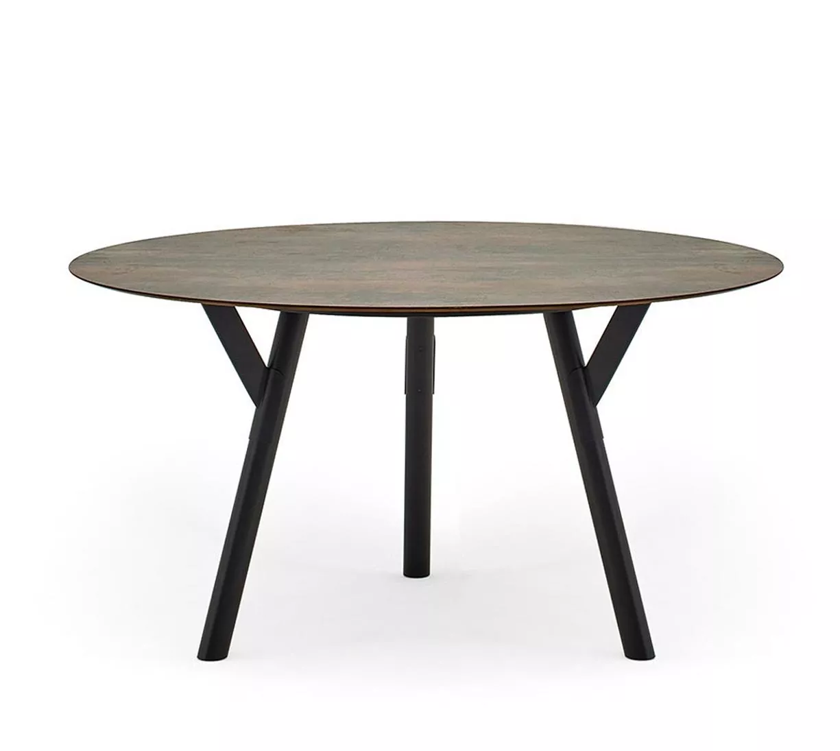 Varaschin Link Gartentisch mit Teakholzbeinen und Edelstahlgestell Ø 130 cm konfigurierbar