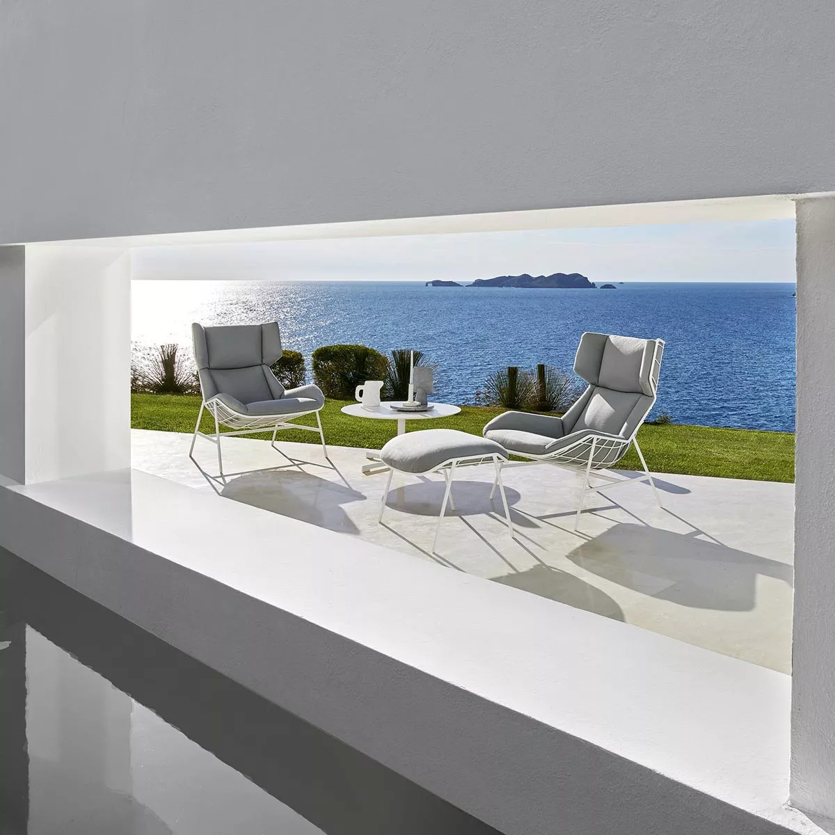 Die Kollektion ist beständig gegen Sonnenlicht und Regen. Die Möbel sollten regelmäßig instandgehalten und im Falle von besonders schlechten