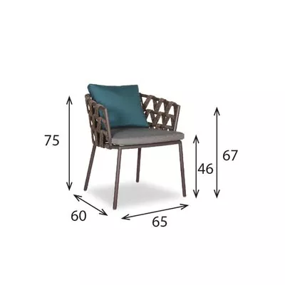 Gesamthöhe: 75 Breite: 65 Sitzhöhe: 46 Tiefe: 60 Höhe der Armlehnen: 67 |
