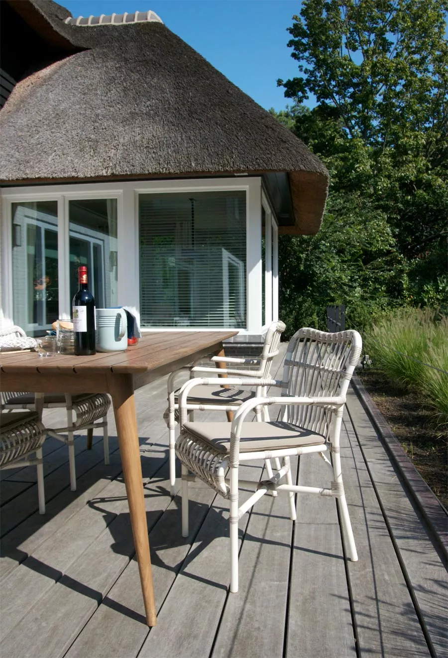 Vincent Sheppard Lucy Gartenstuhl Lucy verleiht Ihrer Terrasse und Ihrem Garten Charme und Komfort. Die weichen, fließenden Rundungen dieser Loungesessel laden dazu ein, sich in der Sonne zu entspannen. Diese Kollektion taucht in die Siebziger ein, kombiniert aber auch das gleiche Retro-Design mit dem heutigen Komfort. Der hervorragende Sitzkomfort wird durch die handwerkliche Kunstfertigkeit dieses Harzgeflechts erreicht. Der Rahmen besteht aus pulverbeschichtetem Aluminium. Lucy kann das ganze Jahr über im Freien bleiben. Die Kollektion umfasst eine Chaiselongue, mehrere Loungesessel, einen Fußhocker und einen Beistelltisch. Code GC064 Größen (cm) Gesamthöhe: 83 Breite: 50 Sitzhöhe: 45 Tiefe: 60 Polsterung Polyethylenfasern Stuhlgleiter Nylongleiter Gestell Gestell aus pulverlackiertem Aluminium Pflege alle 3 Monate kurz mit einem neutralen, milden Reinigungsmittel abwischen. Reinigung zwischen den Fasern: Mit einer sanften Nylonbürste oder einer Niederdruckmaschine. Kissen Abnehmbarer Bezug | Füllung 3cm Polyetherschaum. Wetteranweisungen UV- und witterungsbeständig. Unempfindlich gegenüber Temperaturschwankungen (-25°C bis 70°C).Hitze und Sonne beständig
