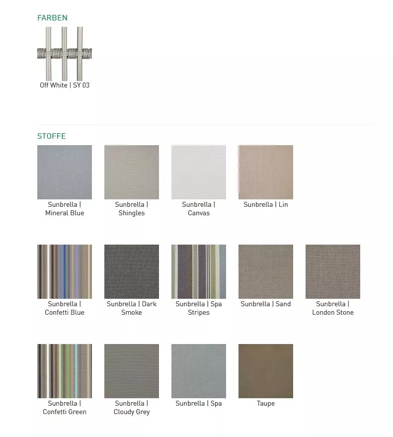 | Material Sitzfläche: | Kunststoffgeflecht, Sunbrella® |