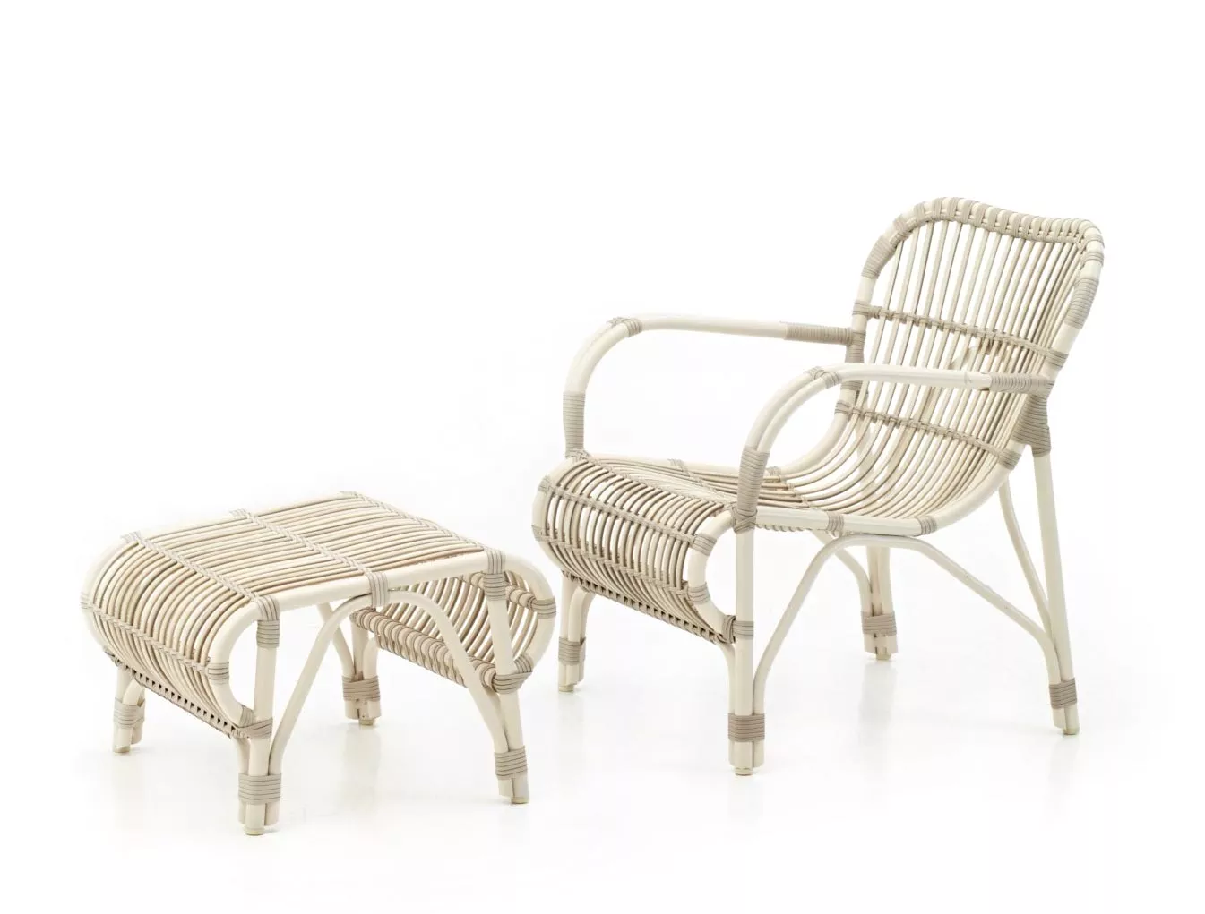 Outdoor Loungehocker Vincent Sheppard Lucy mit einem pulverbeschichtetem Aluminiumgestell Lucy will inject your terrace and garden with charm and comfort. The soft flowing round shapes of these lounge chairs invite you to relax in the sun. This collection dives into the seventies, but also combines the same retro design with all the comfort of today. The excellent seating comfort is achieved due to the hand craftsmanship needed for this wickerwork in resin. The frame is made of powder coated aluminum. Lucy can be left outside throughout the whole year. The collection includes a chaise longue, several lounge chairs, a footstool and side table. Code GT S62 Größen (cm) Gesamthöhe: 41.00 Breite: 75.00 Länge : 75.00 Sitzhöhe: 41.00 Polsterung Polyethylenfasern Stuhlgleiter Nylongleiter Gestell Gestell aus pulverlackiertem Aluminium Pflege alle 3 Monate kurz mit einem neutralen, milden Reinigungsmittel abwischen. Reinigung zwischen den Fasern: Miteiner sanften Nylonbürste oder einer Niederdruckmaschine. Kissen Abnehmbarer Bezug | Füllung Sitzkissen: 12cm HR Kaltschaum. Wetteranweisungen UV- und witterungsbeständig. Unempfindlich gegenüber Temperaturschwankungen (-25°C bis 70°C).Hitze und Sonne beständig