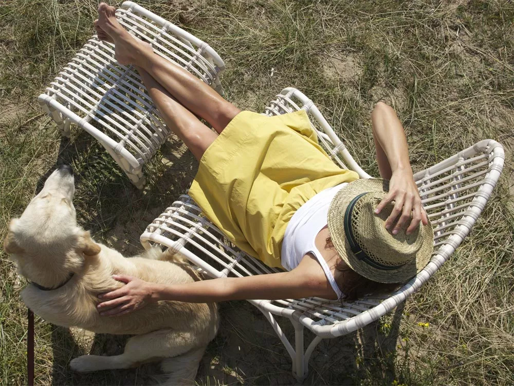 Vincent Sheppard Lucy Sonnenliege Lucy verleiht Ihrer Terrasse und Ihrem Garten Charme und Komfort. Die weichen, fließenden Rundungen dieser Loungesessel laden dazu ein, sich in der Sonne zu entspannen. Diese Kollektion taucht in die Siebziger ein, kombiniert aber auch das gleiche Retro-Design mit dem heutigen Komfort. Der hervorragende Sitzkomfort wird durch die handwerkliche Kunstfertigkeit dieses Harzgeflechts erreicht. Der Rahmen besteht aus pulverbeschichtetem Aluminium. Lucy kann das ganze Jahr über im Freien bleiben. Die Kollektion umfasst eine Chaiselongue, mehrere Loungesessel, einen Fußhocker und einen Beistelltisch. inkl. Rollen CodeGC056 Größen (cm) Gesamthöhe: 86 Breite: 70 Sitzhöhe: 30 Tiefe: 192 Polsterung Polyethylenfasern Stuhlgleiter Nylongleiter Gestell Gestell aus pulverlackiertem Aluminium Pflege alle 3 Monate kurz mit einem neutralen, milden Reinigungsmittel abwischen. Reinigung zwischen den Fasern: Mit einer sanften Nylonbürste oder einer Niederdruckmaschine. Kissen Abnehmbarer Bezug | Füllung 3cm Polyetherschaum. Wetteranweisungen UV- und witterungsbeständig. Unempfindlich gegenüber Temperaturschwankungen (-25°C bis 70°C).Hitze und Sonne beständig