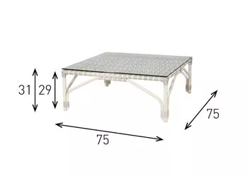 | Material Tischplatte: | Glas, Kunststoffgeflecht |