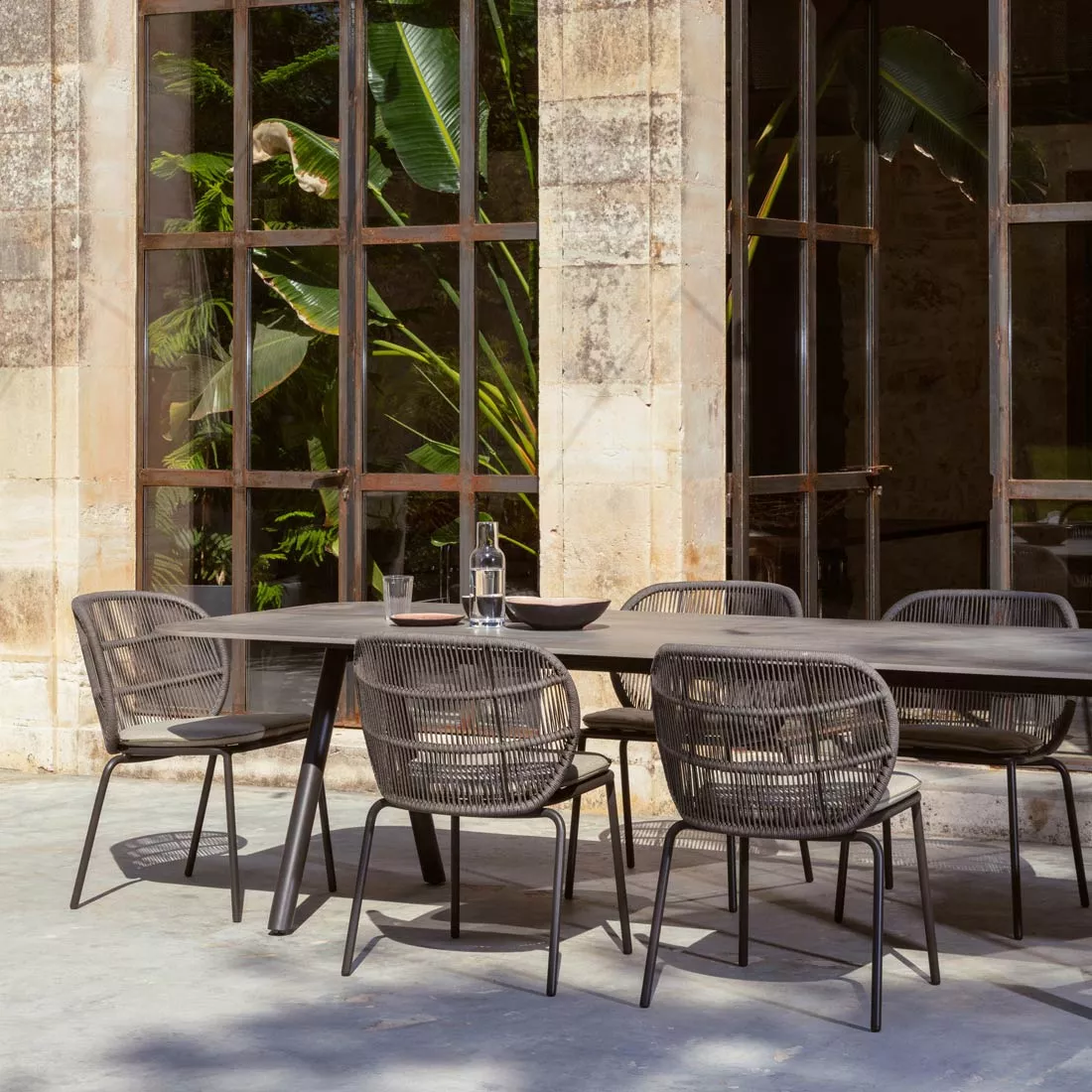 Inspiriert von den vielseitigen Möglichkeiten, verschiedene Materialien in einzigartige Designs zu mischen, kreierten Studio Segers die Kodo-Kollektion. Naturkeramik, industrielles Aluminium und taktiles Acrylseil finden Verwendung in der gesamten Kollektion. Diese Materialien sind wetterbeständig und verleihen den Möbeln ein zeitgemäßes Gefühl, während die weichen Kurven und abgerundeten Rücken ein warmes und einladendes Ambiente ausstrahlen. Suchen Sie sich einen ruhigen Ort aus und entspannen Sie sich auf der bequemen Möbeln. Berühren, fühlen und erleben Sie das zarte Gewebe und die bequemen Kissen, während Sie drinnen oder draußen einen Drink genießen.