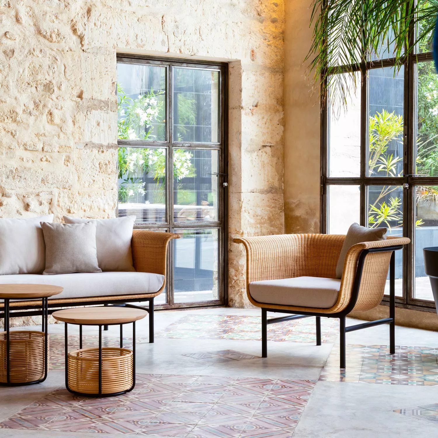 Wenn Sie nach einem atemberaubenden Design und tollem Outdoorkomfort suchen, bietet die Wicked Kollektion beides. Die Kollektion wurde von dem Brüsseler Designer Alain Gilles entworfen. Durch die Schaffung einer leichten und luftigen Form hat Alain Gilles es geschafft, ein neues Licht auf die traditionellen Korbmöbel zu werfen, so wie wir sie kennen. Er kombinierte das warme Korbmaterial mit dem kalten aber trendigen Stahlrahmen und wollte eine Verbindung von dem Handwerk und industriellen Prozessen schaffen. Die Kollektion besteht aus einem Sessel, einem Sofa, einem Couchtisch und einem Beistelltisch. Selten werden Sie so kühne, grafische Linien und starkes Design in Outdoormöbeln sehen.