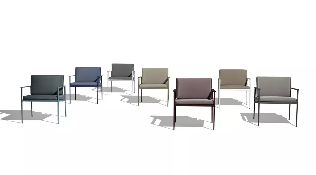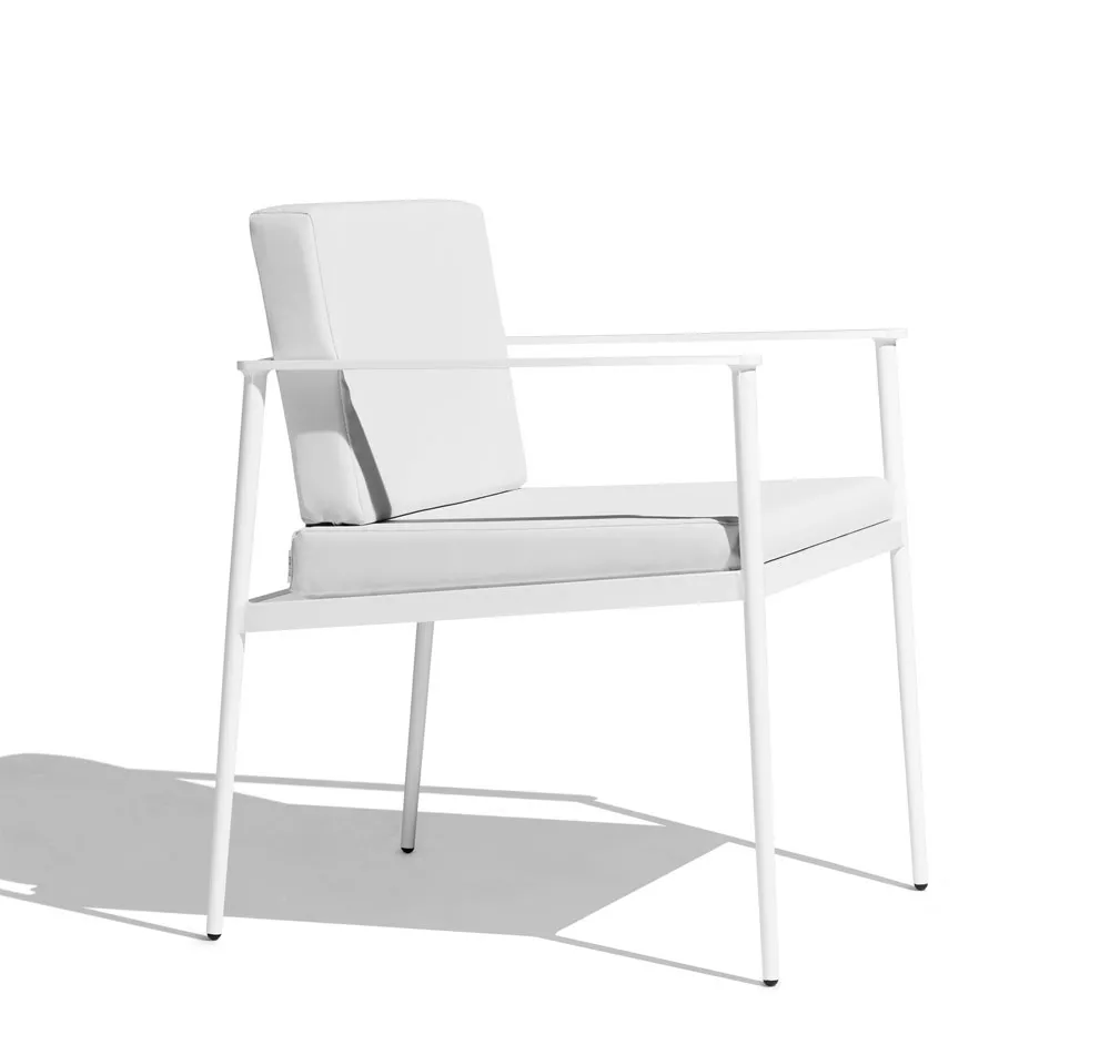 Sofas, armchairs, dining and low table collection, manufactured with an extruded aluminium structure, conified legs and final finish made with polyester powder coating.