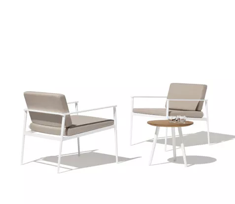 Übersicht Stoffauswahl BivaqAlle Produktfarben ansehen » Vint Loungetisch von Bivaq Die Vint Kollektion von Bivaq verfügt über ein modernes Image, ist wetterfest und für den Außenbereich sehr gut geeignet. Die Palette der Komponenten dieser Kollektion bildet eine komplette und ganzheitliche Lösung für Ihren Ess- und viele andere Bereiche. Der Vinytex- (Kunststoff-Haptik) oder Acryl-Stoff (Stoff-Haptik) der Kollektion Vint ist Wetter- und UV-beständig, damit die Bivaq Kollektion Vint optimal vor Umwelteinflüssen geschützt wird. Die robuste Struktur der Gartenmöbel-Serie ist aus hochwertigem Aluminium hergestellt und mit einer Pulverbeschichtung versehen. Aluminiumgestellpulverbeschichtet TischplattenIrokoholzHPLAluminiumDekton Maße (B × T × H) 130 × 60 × 40 cm Sofas, armchairs, dining and low table collection, manufactured with an extruded aluminium structure, conified legs and final finish made with polyester powder coating. Acrylic fabric: 100% solution dyed acrylic, UV resistance (class. 7/8) with stain and water repellent finish. Washable at 30ºC. Open air drying. Vinytex fabric: synthetic fabric made of plastic coated polyester. Incorporate a waterproof layer. UV resistance (class. 7/8). It is recommended to clean it with neutral soap diluted in large quantity of water.