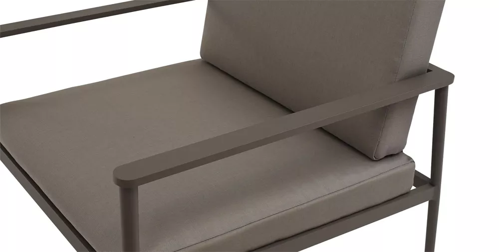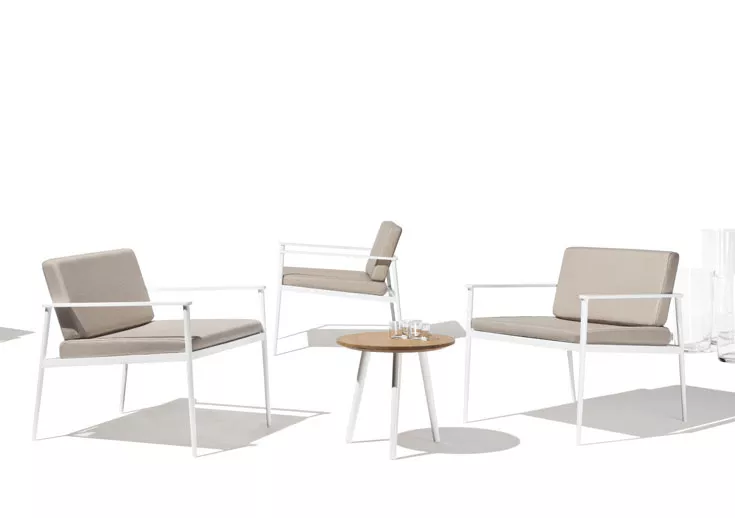 Die Vint Kollektion von Bivaq verfügt über ein modernes Image, ist wetterfest und für den Außenbereich sehr gut geeignet. Die Palette der Komponenten dieser Kollektion bildet eine komplette und ganzheitliche Lösung für Ihren Ess- und viele andere Bereiche. Der Vinytex- oder Acryl-Stoff der Kollektion Vint enthält eine wasserdichte Schicht und ist UV-beständig, damit die Bivaq Kollektion Vint optimal vor Umwelteinflüssen geschützt wird. Die robuste Struktur der Gartenmöbel-Serie ist aus hochwertigem Aluminium hergestellt und mit einer Pulverbeschichtung versehen.