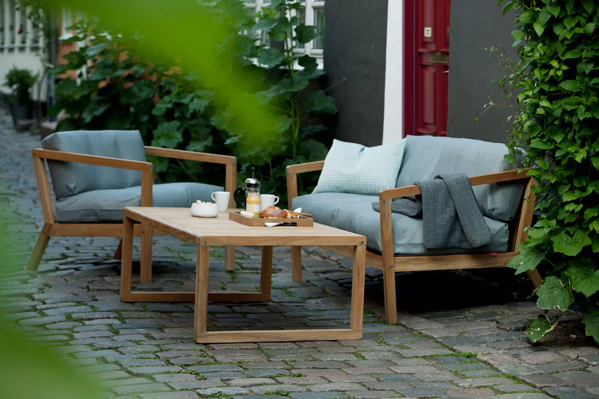 Die neue, elegante Teakserie - Virkelyst - eignet sich mit ihrem schlichten Design ideal für Erlebnisse im Freien, denn sie lädt zu gemütlichem Beisammensein ein. Das Sofa mit seinen reinen Linien, leicht geneigten Armlehnen und losen Kissen bietet höchsten Komfort und macht mit seinem lässigen, aber gleichzeitig eleganten Stil sowohl im Garten als auch auf der Terrasse eine gute Figur. Der schöne, schlichte Tisch ist niedrig und macht die entspannte Atmosphäre perfekt. Das Sofa ist mit den tollen Barriere® Auflagen ausgestattet, deren dauerhaft widerstandsfähiges Material weder Feuchtigkeit aufnimmt noch schlechten Geruch entwickelt.