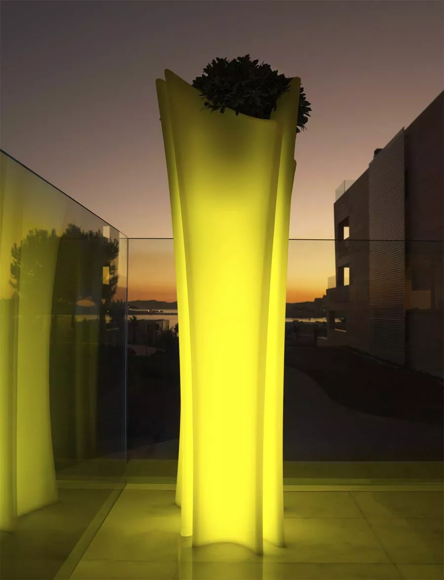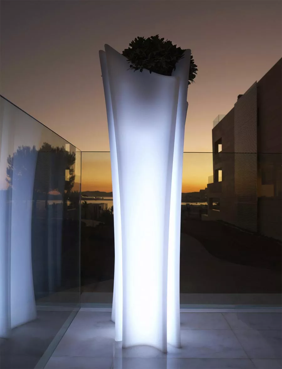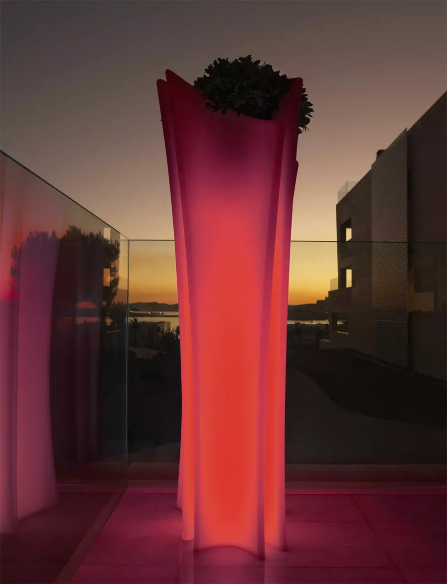 Die Vondom Alma beleuchtete Pflanzkübel ist immer ein Hingucker. Diese originellen Gartenmöbel zeichnen abgerundete Elemente und flüssige, ausdrucksvolle Formen aus. Das kurvenreiche Design mit eleganten Formen, die aus Polyethylen, im Rotationsgussverfahren hergestellt und dabei noch 100% recycelbar sind macht Alma besonders markant in jeder Umgebung.