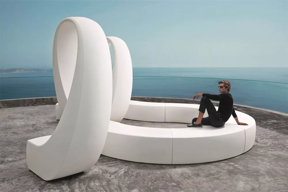 Die beleuchtete Gartenmöbelkollektion And von Vondom, entworfen von Fabio Novembre, bietet eine breite Farbpalette und überzeugt durch ihre vielseitigen Kombinationsmöglichkeiten. And ist ein räumliches Konzept, ein Volumen, das die Luft durchschneidet und emotionale Turbulenzen bei denen auslöst, die sich von ihm mitreißen lassen.