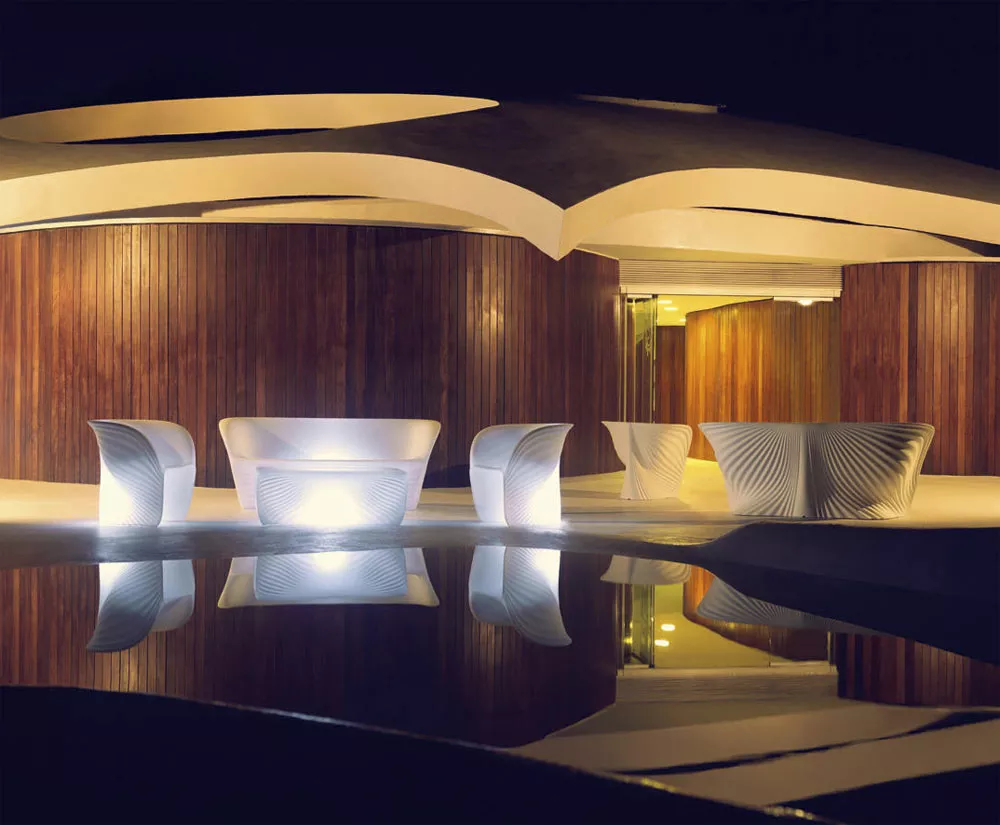Vondom Biophilia GartensofaBiophilia Gartensofa ist für Exterieur und Interieur sehr gut geeignet. Diese außergewöhnliche Loungesofa ist in verschiedenen Ausführungen erhältlich. Die Biophilia Gartenmöbel ist UV-sonnenlichtbeständig und nach der UV8 Norm geprüft. Alle Möbel dieser Kollektion können bei Bedarf einfach mit einem Hochdruckreiniger im Handumdrehen wieder sauber gemacht werden. AUSFÜHRUNGEN Standard Verschiedene Farben, die Beleuchtung ist nicht integriert, die Oberfläche ist rau. Hochglanz Verschiedene Farben, hochglänzend lackiert die Beleuchtung ist nicht möglich, weil der Lack blickdicht ist. (Auch in Two-Tone lackiert erhältlich, Artikelnr. 59003FP) Eis / Energiesparlampe LLUM Kunststoff (Eisweiß) halbtransparent • Energiesparleuchte E27 • Schutzklasse IP65, 3m Kabel Eis / LED RGB Kunststoff (Eisweiß) halbtransparent • LED Leuchte, 7 Farben • Schutzklasse IP65 Eis / LED RGB DMX Kunststoff (Eisweiß) halbtransparent • LED Leuchte mit Steuerung über Tablet, Computer und Smartphone • Schutzklasse IP65 Eis / LED RGB BATERIA Kunststoff (Eisweiß) halbtransparent • LED Leuchte, Akkubetrieben (5-6 Stunden), 5 Farben • Schutzklasse IPX8 Maße (B × T × H) 190 × 66 × 76 cm