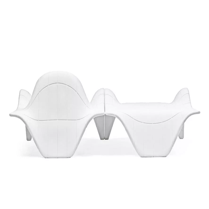 F3 = Form folgt Funktion. Das Design der Loungekollektion F3 von Vondom, entworfen von Designer Fabio November, basiert auf mathematisch berechneten Flächen. Die abgerundeten, "frei fließenden" Elemente erhalten durch das Stapelkonzept und die präzise Fertigung eine perfekte Funktion. Ein scheinbar einfaches Design verbindet die ästhetischen und funktionalen Eigenschaften der Kollektion und macht sie zu einem Blickfang im Garten oder auf der Terrasse.