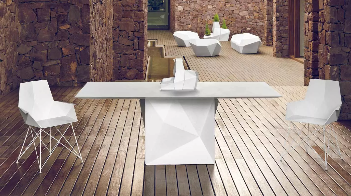 Vondom Faz Esstisch HPL SOLID CORE 200 cm Die von Ramón Esteve entworfene Kollektion Vondom Faz ist eine der emblematischsten Kollektionen des Unternehmens. Sie besticht durch ihr modulares Design und ihre Raffinesse und verkörpert Harmonie, Ruhe und Zeitlosigkeit durch mineralische und markante Formen. Faz verwandelt Umgebungen durch die einzigartige Kombination von Material und Licht und schafft so eine einhüllende und exklusive Atmosphäre. Maße (B × T × H) 200 × 100 × 74 cm Eigenschaften der Beleuchtungsvarianten: LED weiss (ausschließlich weiße Beleuchtung): - weiße LEDs 4000 - 4500 Kelvin- 720 - 2800 LM Max. (je nach Modell)- 16 - 72 W Max. (Modelle je nach Verfügbarkeit)- Netzgerat: 100-240 Volt / 50-6 0Hz- Energieeffizienzklasse: A- Schutzklasse: IP65 / für feuchte Bereiche geeignet.- 5 m langes, weißes Kabel LED-RGB: - Vielfarbige RGB-LEDs, 3 Weißtöne und 9 Farben (dunkelblau, hellblau, dunkelgrün, hellgrün, lila, flieder, rot, orange, gelb)- Farbwechsel durch Fernbedienung (433,92 MHz) / Reichweite: 10-15 m- 450 - 1100 LM Max. (je nach Modell)- 16 - 72 W Max. (je nach Modell)- Netzgerät: 100-240 Volt / 50-6 0Hz- Energieeffiziensklasse: A- Schutzklasse: IP65 / für feuchte Bereiche geeignet.- 5 m langes, weißes Kabel LED-RGB mit Akku: - Vielfarbige RGB-LEDs, 3 Weißtöne und 9 Farben (dunkelblau, hellblau, dunkelgrün, hellgrün, lila, flieder, rot, orange, gelb)- Farbwechsel durch Fernbedienung (433,92 MHz) / Reichweite: 10-15 m- 450 - 1100 Lumen Max. (je nach Modell)- 16 - 72 W Max. (je nach Modell)- inkl. Li-Ion-Batterie 5,2 V 19 Ah (Ladedauer: 4 Stunden, Betriebsdauer 5-6 Stunden, 500 Ladezyklen)- 19 Ah (je nach Verfugbarkeit) 12 V / 5-6 Stunden Autonomie/ Ladezeit 4 Stunden- 500 Zyklen / IN: 100-240 V AC / 50-60 Hz- Energieeffiziensklasse: A- Schutzklasse: IP65 / für feuchte Bereiche geeignet. RGB-LED mit WiFi (DMX - mit/ohne Akku): DMX ist ein digitales Steuerungsprotokoll, das in der Bühnen- und Veranstaltungstechnik zur Steuerung von der Lichttechnik eingesetzt wird. Es ermöglicht das Steuern einer oder mehrerer Leuchten über eine Steuereinheit. Für die Steuerung über WiFi ist ein Transmitter notwendig, der nicht im Lieferumfang enthalten ist. Sie haben die Möglichkeit zwischen zwei verschiedenen Transmittern zu wählen: Home WIFI DMX: Access Point über den Sie alle VONDOM Produkte mit Ihren IOS oder Android Gerät steuern können. Professional XLR DMX: XRL mit dem Sie alle VONDOM Produkte über ein Mischpult oder Computer steuern können. Sie benötigen nur einen Transmitter für die Steuerung Ihrer gesamten VONDOM Möbel, Pflanzgefäße und Leuchten.