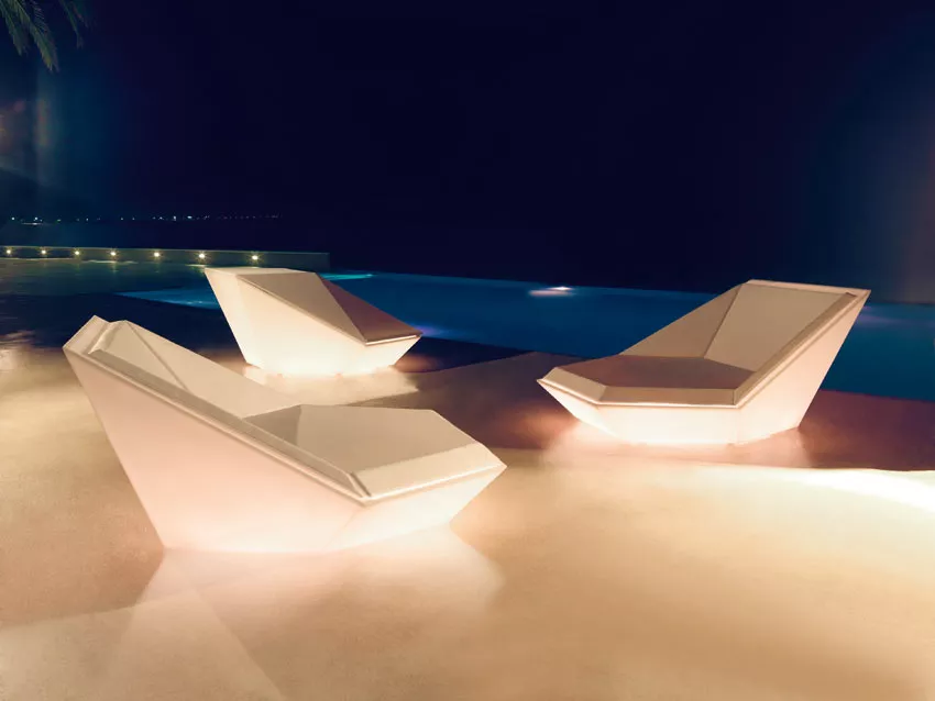 Vondom Faz Lounge SonnenliegeDie von Ramón Esteve entworfene Kollektion Vondom Faz ist eine der emblematischsten Kollektionen des Unternehmens. Sie besticht durch ihr modulares Design und ihre Raffinesse und verkörpert Harmonie, Ruhe und Zeitlosigkeit durch mineralische und markante Formen. Faz verwandelt Umgebungen durch die einzigartige Kombination von Material und Licht und schafft so eine einhüllende und exklusive Atmosphäre. Maße (B × T × H) 70 × 207 × 44 cm Eigenschaften der Beleuchtungsvarianten: LED weiss (ausschließlich weiße Beleuchtung): - weiße LEDs 4000 - 4500 Kelvin- 720 - 2800 LM Max. (je nach Modell)- 16 - 72 W Max. (Modelle je nach Verfügbarkeit)- Netzgerät: 100-240 Volt / 50-6 0Hz- Energieeffizienzklasse: A- Schutzklasse: IP65 / für feuchte Bereiche geeignet.- 5 m langes, weißes Kabel LED-RGB: - Vielfarbige RGB-LEDs, 3 Weißtöne und 9 Farben (dunkelblau, hellblau, dunkelgrün, hellgrün, lila, flieder, rot, orange, gelb)- Farbwechsel durch Fernbedienung (433,92 MHz) / Reichweite: 10-15 m- 450 - 1100 LM Max. (je nach Modell)- 16 - 72 W Max. (je nach Modell)- Netzgerät: 100-240 Volt / 50-6 0Hz- Energieeffiziensklasse: A- Schutzklasse: IP65 / für feuchte Bereiche geeignet.- 5 m langes, weißes Kabel LED-RGB mit Akku: - Vielfarbige RGB-LEDs, 3 Weißtöne und 9 Farben (dunkelblau, hellblau, dunkelgrün, hellgrün, lila, flieder, rot, orange, gelb)- Farbwechsel durch Fernbedienung (433,92 MHz) / Reichweite: 10-15 m- 450 - 1100 Lumen Max. (je nach Modell)- 16 - 72 W Max. (je nach Modell)- inkl. Li-Ion-Batterie 5,2 V 19 Ah (Ladedauer: 4 Stunden, Betriebsdauer 5-6 Stunden, 500 Ladezyklen)- 19 Ah (je nach Verfügbarkeit) 12 V / 5-6 Stunden Autonomie/ Ladezeit 4 Stunden- 500 Zyklen / IN: 100-240 V AC / 50-60 Hz- Energieeffiziensklasse: A- Schutzklasse: IP65 / für feuchte Bereiche geeignet. RGB-LED mit WiFi (DMX - mit/ohne Akku): DMX ist ein digitales Steuerungsprotokoll, das in der Bühnen- und Veranstaltungstechnik zur Steuerung von der Lichttechnik eingesetzt wird. Es ermöglicht das Steuern einer oder mehrerer Leuchten über eine Steuereinheit. Für die Steuerung über WiFi ist ein Transmitter notwendig, der nicht im Lieferumfang enthalten ist. Sie haben die Möglichkeit zwischen zwei verschiedenen Transmittern zu wählen: Home WIFI DMX: Access Point über den Sie alle VONDOM Produkte mit Ihren IOS oder Android Gerät steuern können. Professional XLR DMX: XRL mit dem Sie alle VONDOM Produkte über ein Mischpult oder Computer steuern können. Sie benötigen nur einen Transmitter für die Steuerung Ihrer gesamten VONDOM Möbel, Pflanzgefäße und Leuchten.